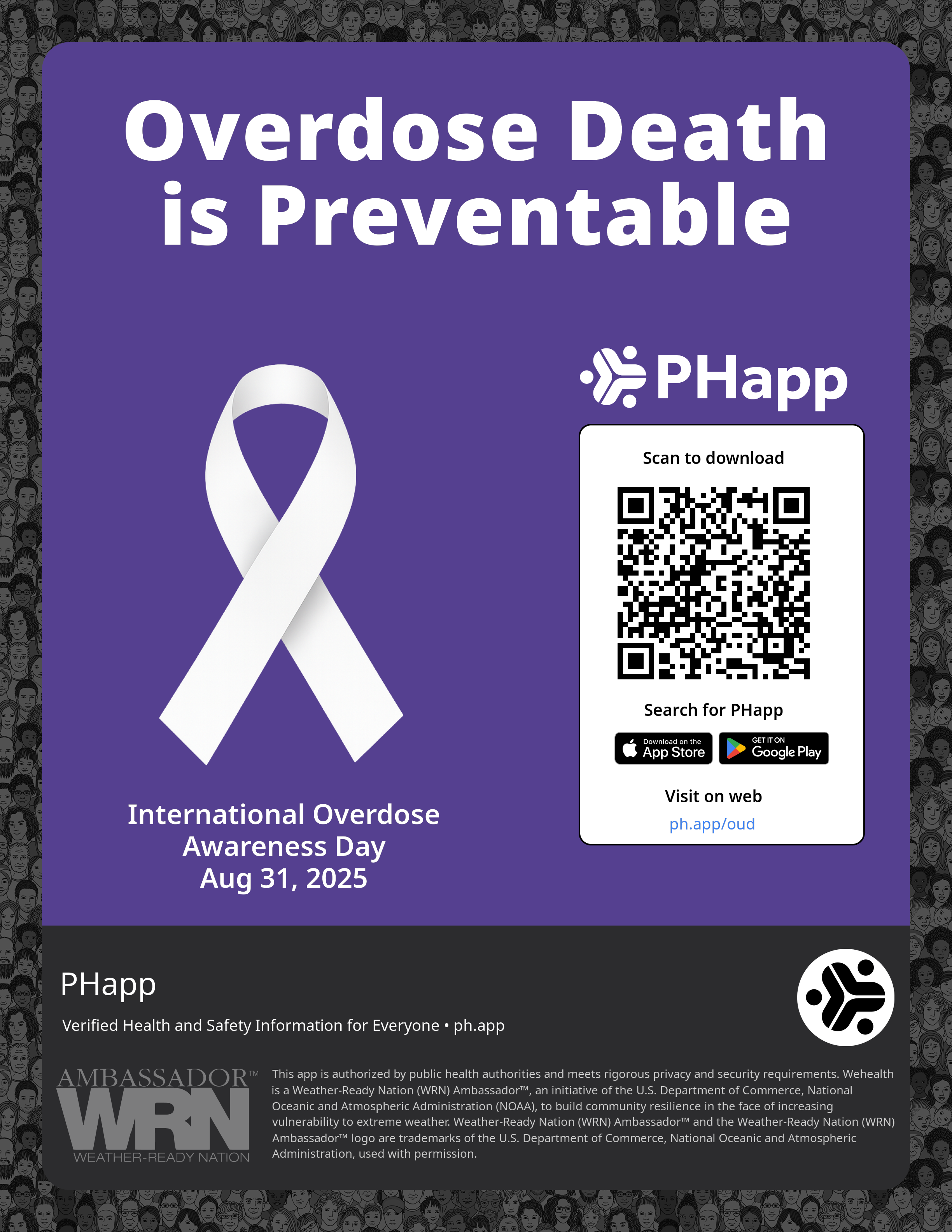 Print this flyer/poster on 8.5×11 paper. The QR code and links are personalized for PHapp.