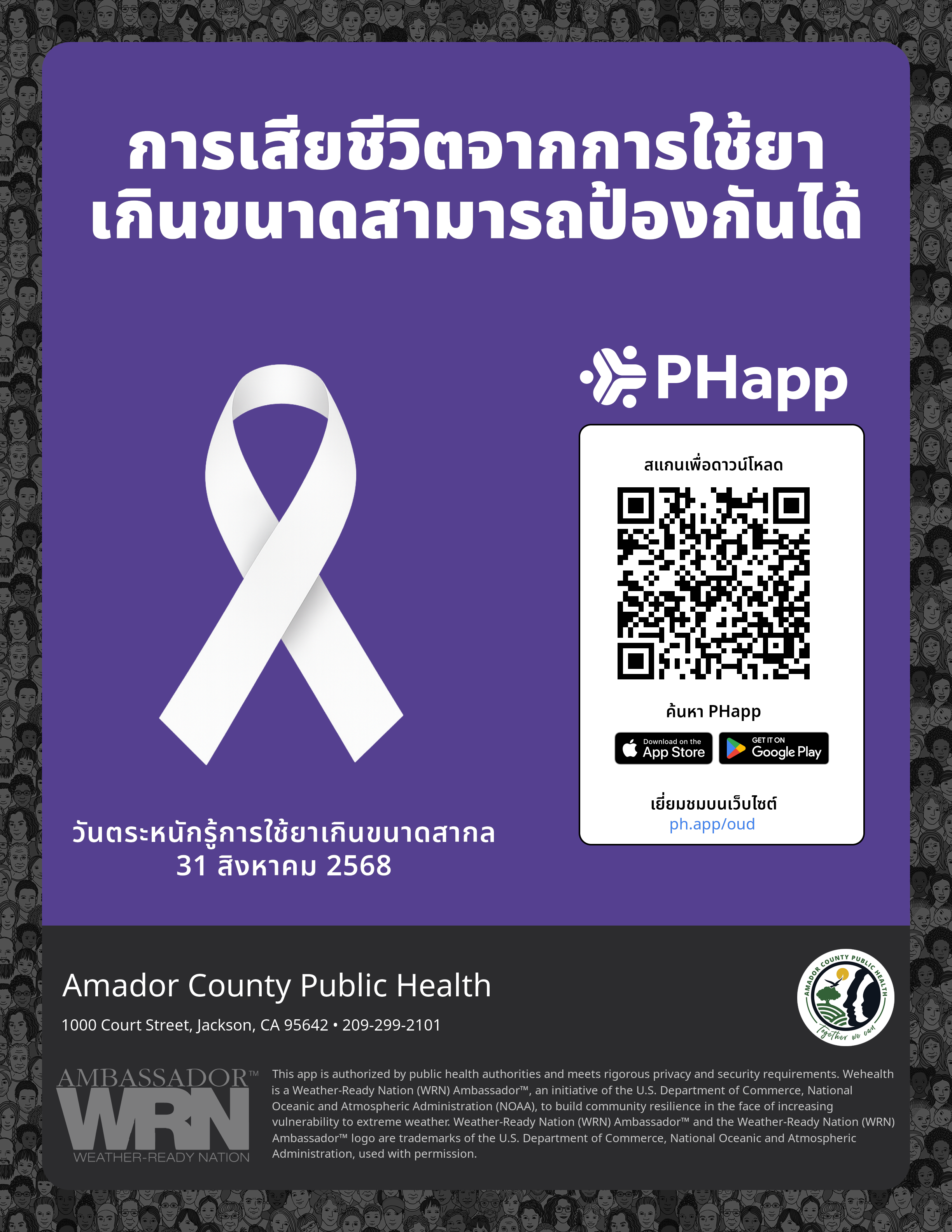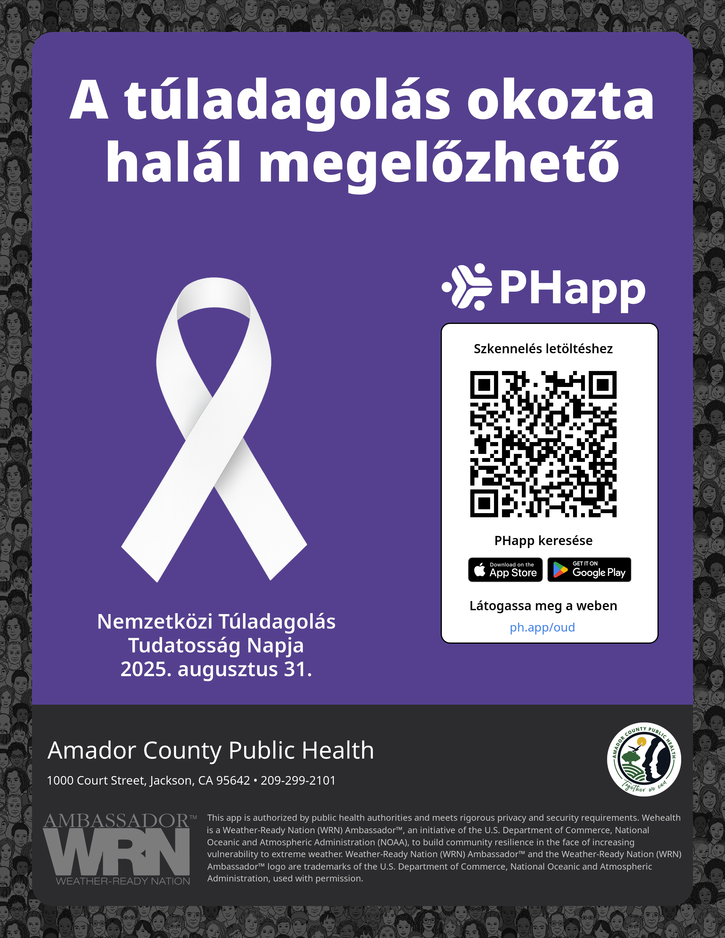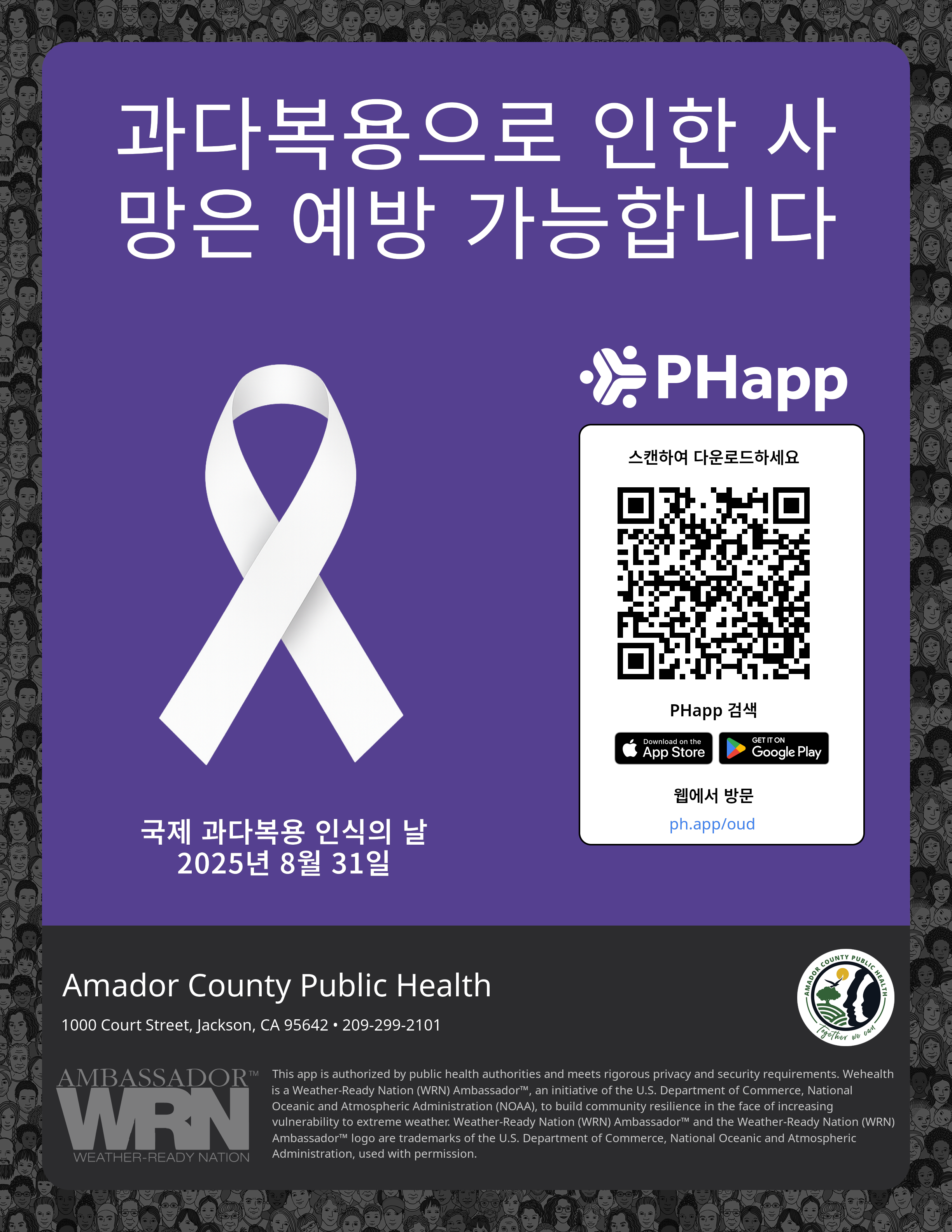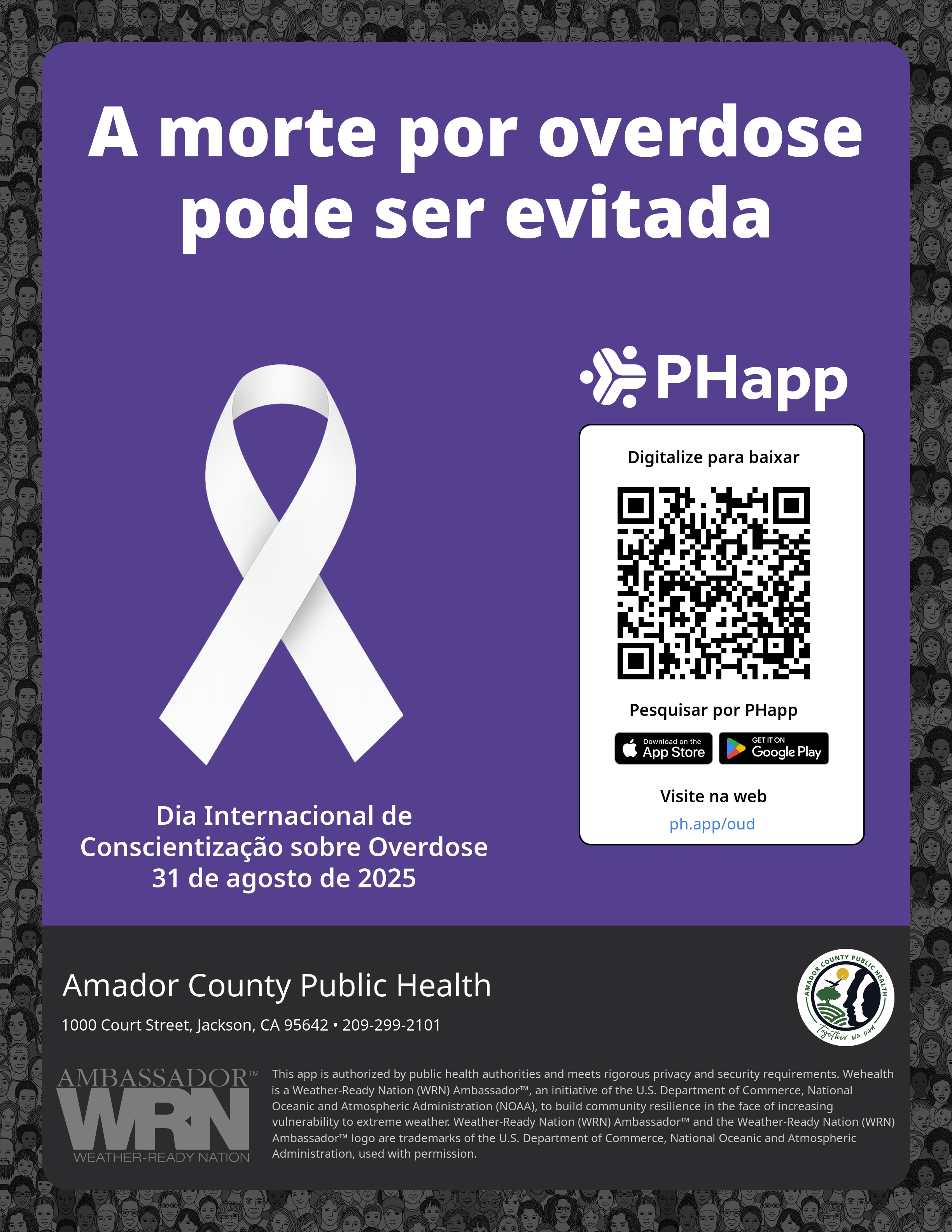 Print this flyer/poster on 8.5×11 paper. The QR code and links are personalized for Amador County Public Health.