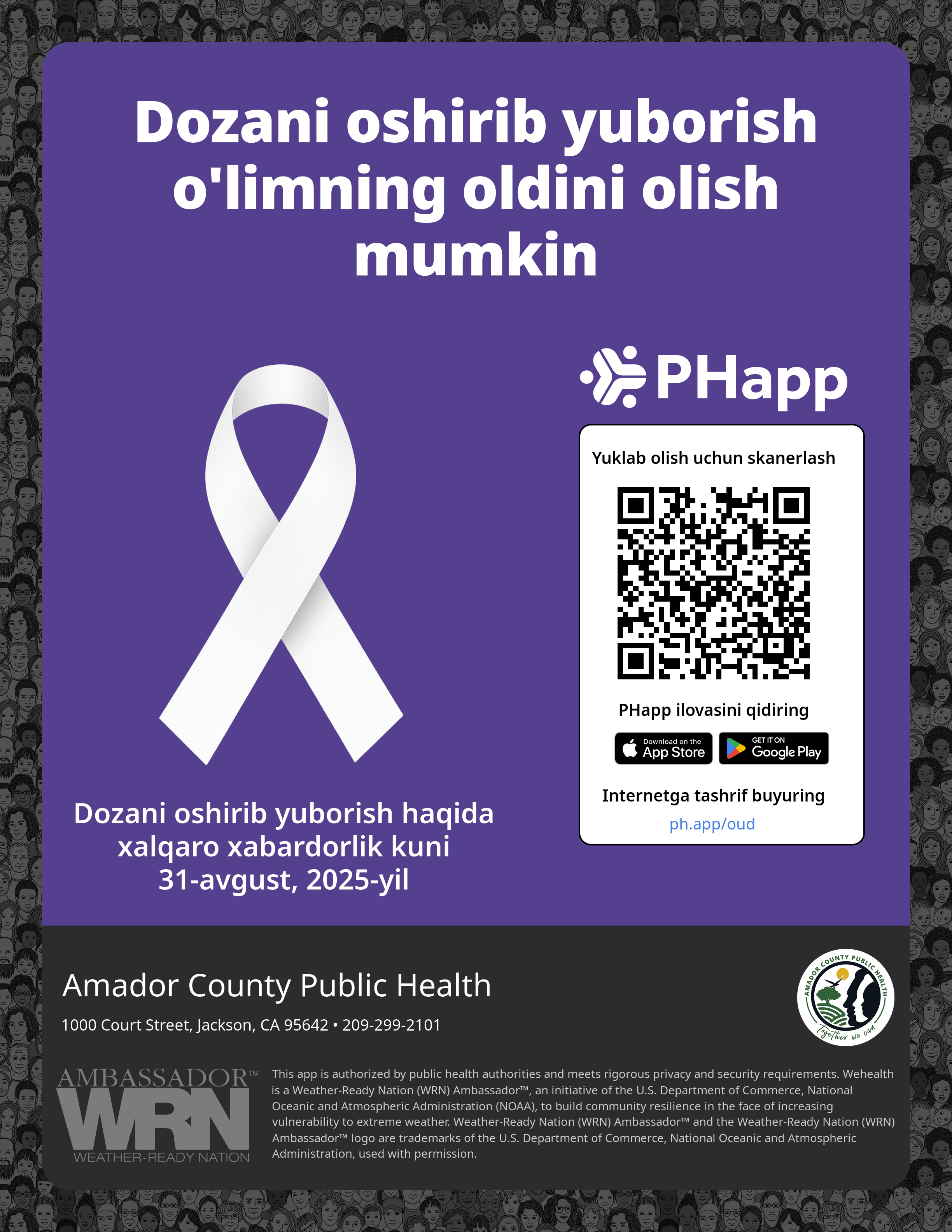 Post this on your own social media platform. The QR code and links are personalized for Amador County Public Health.