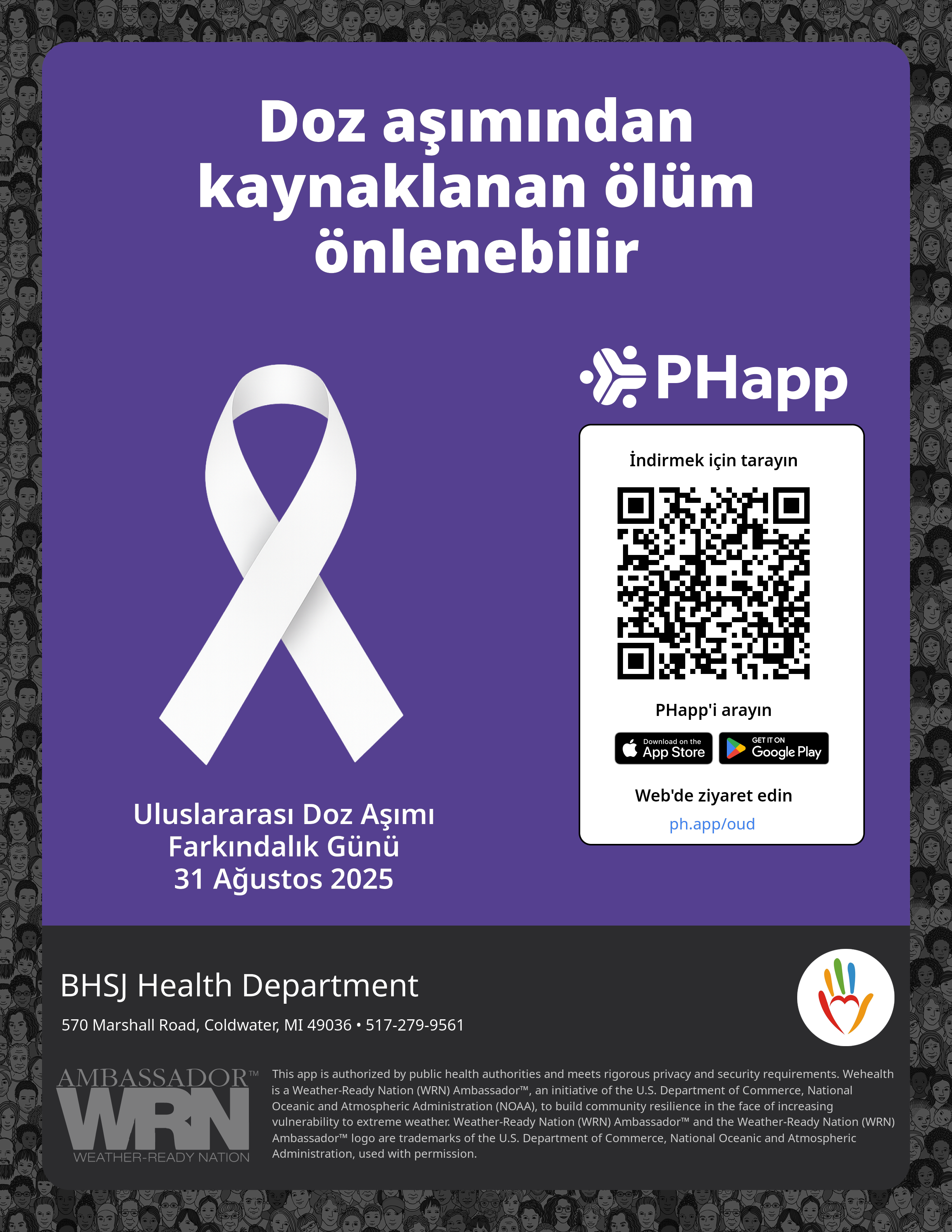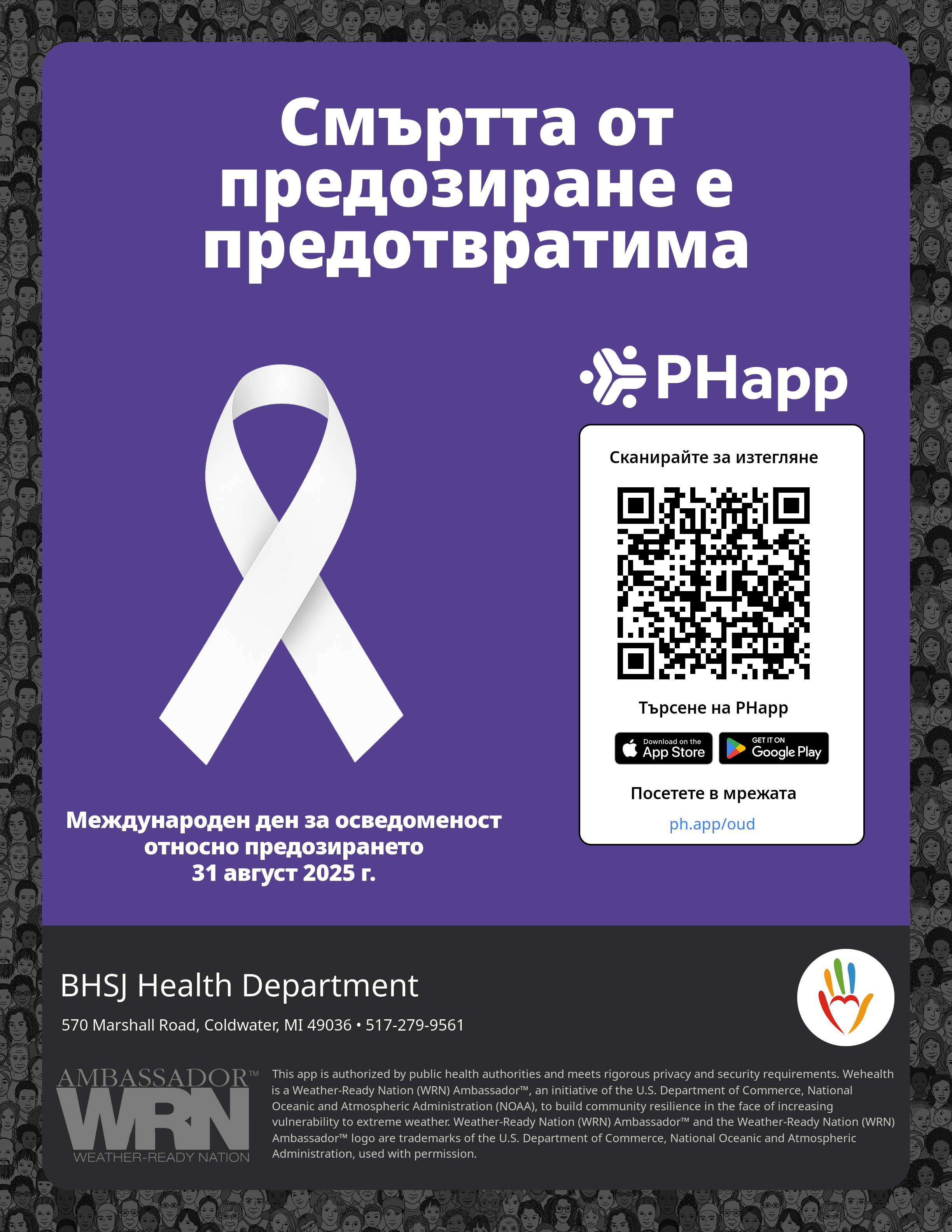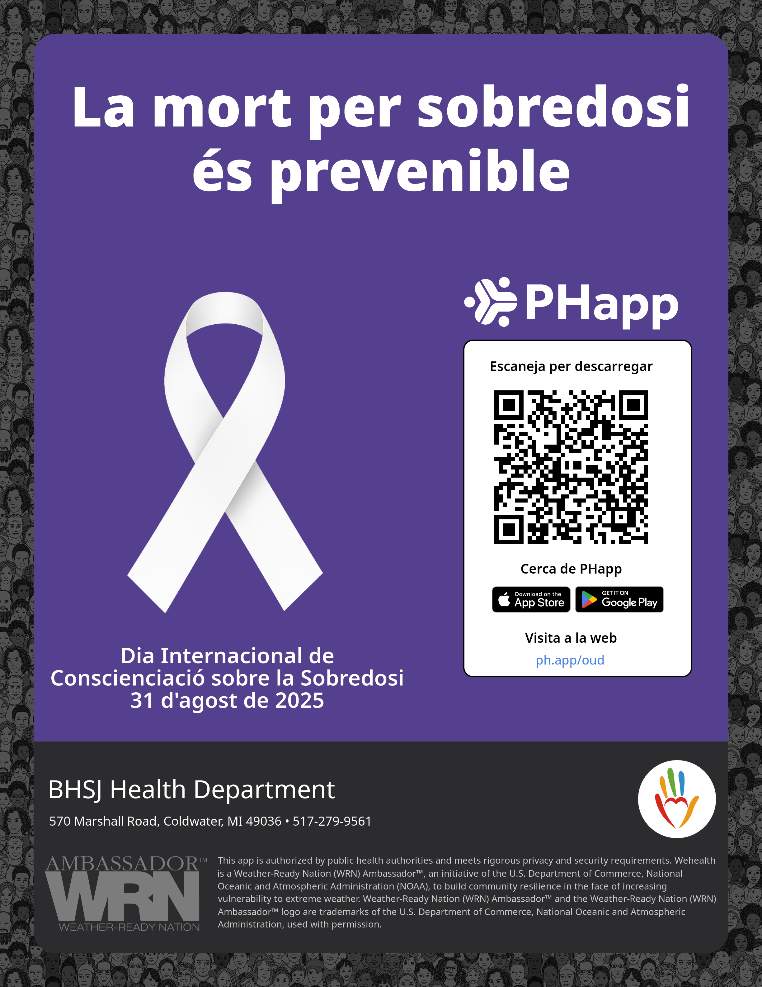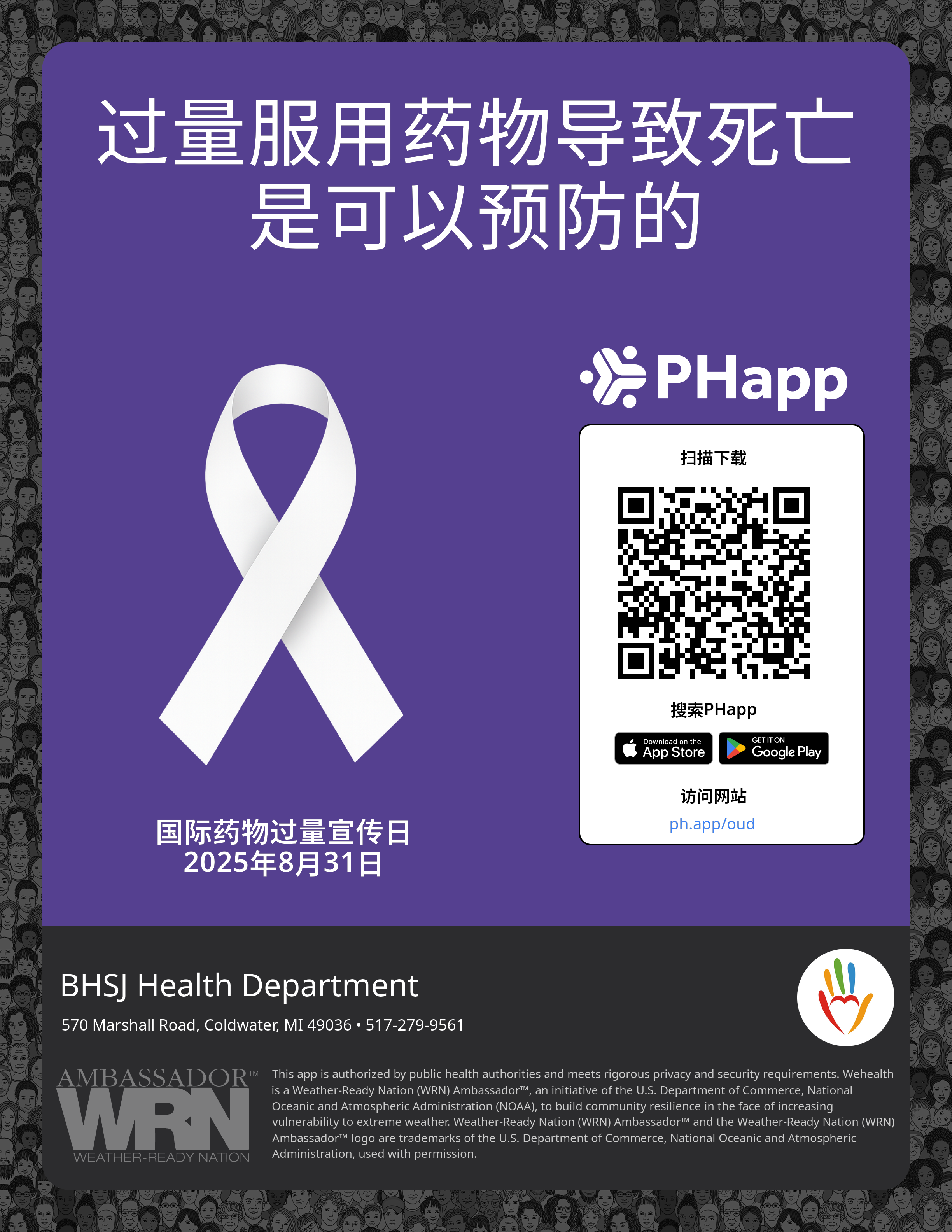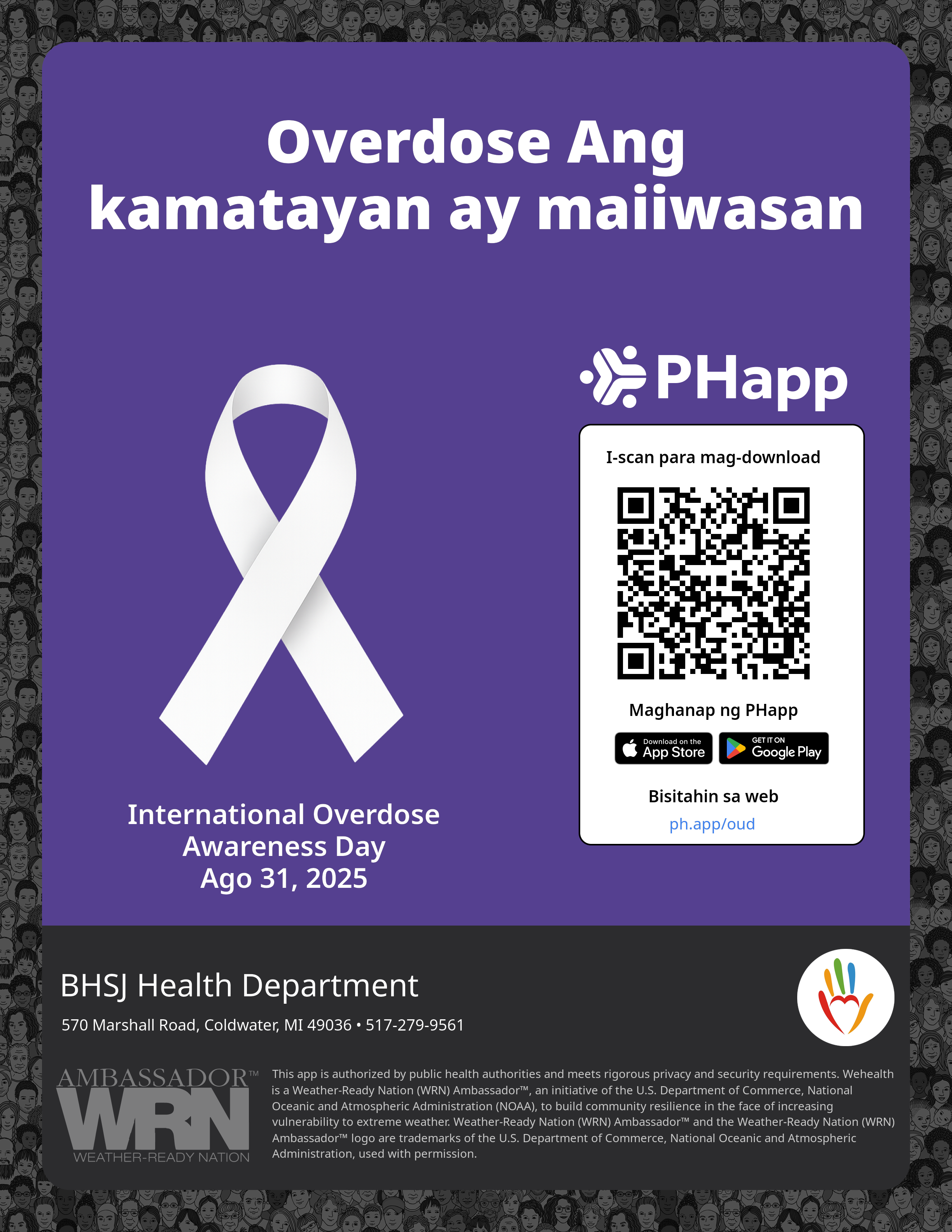 Print this flyer/poster on 8.5×11 paper. The QR code and links are personalized for BHSJ Health Department.