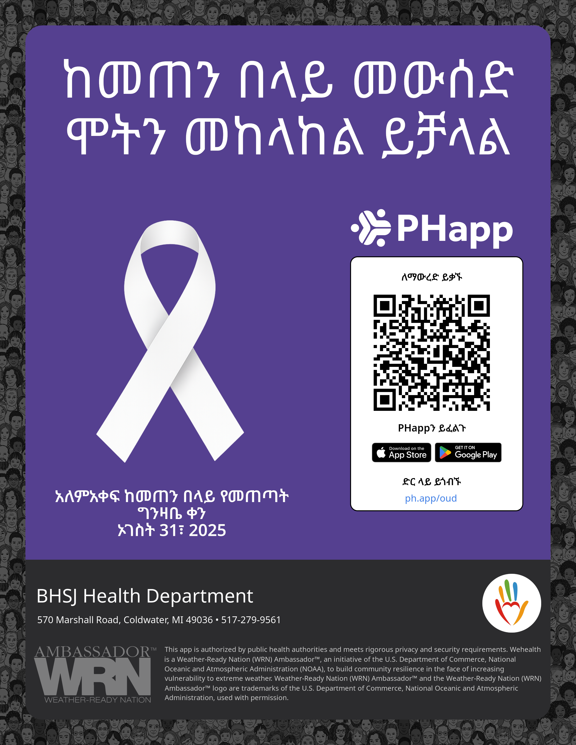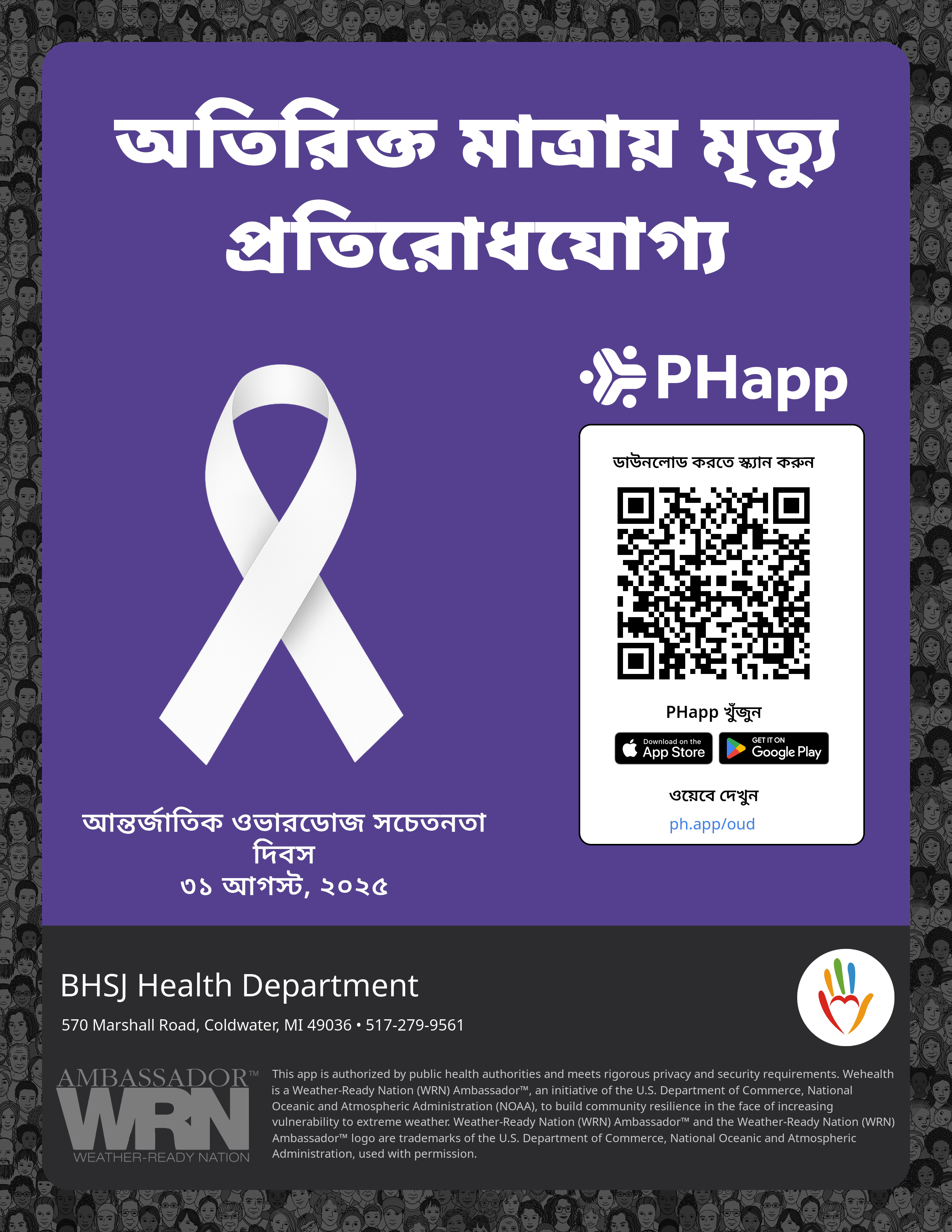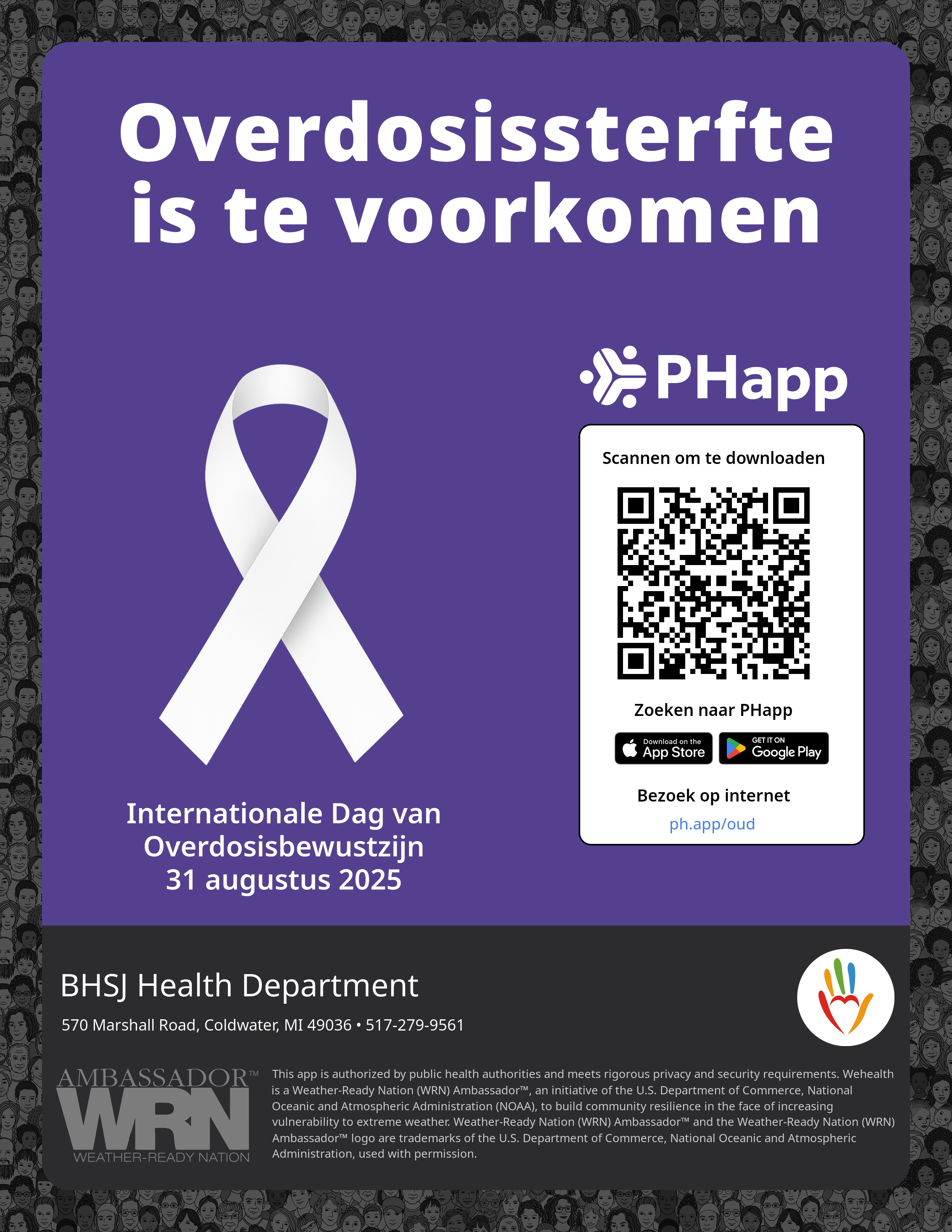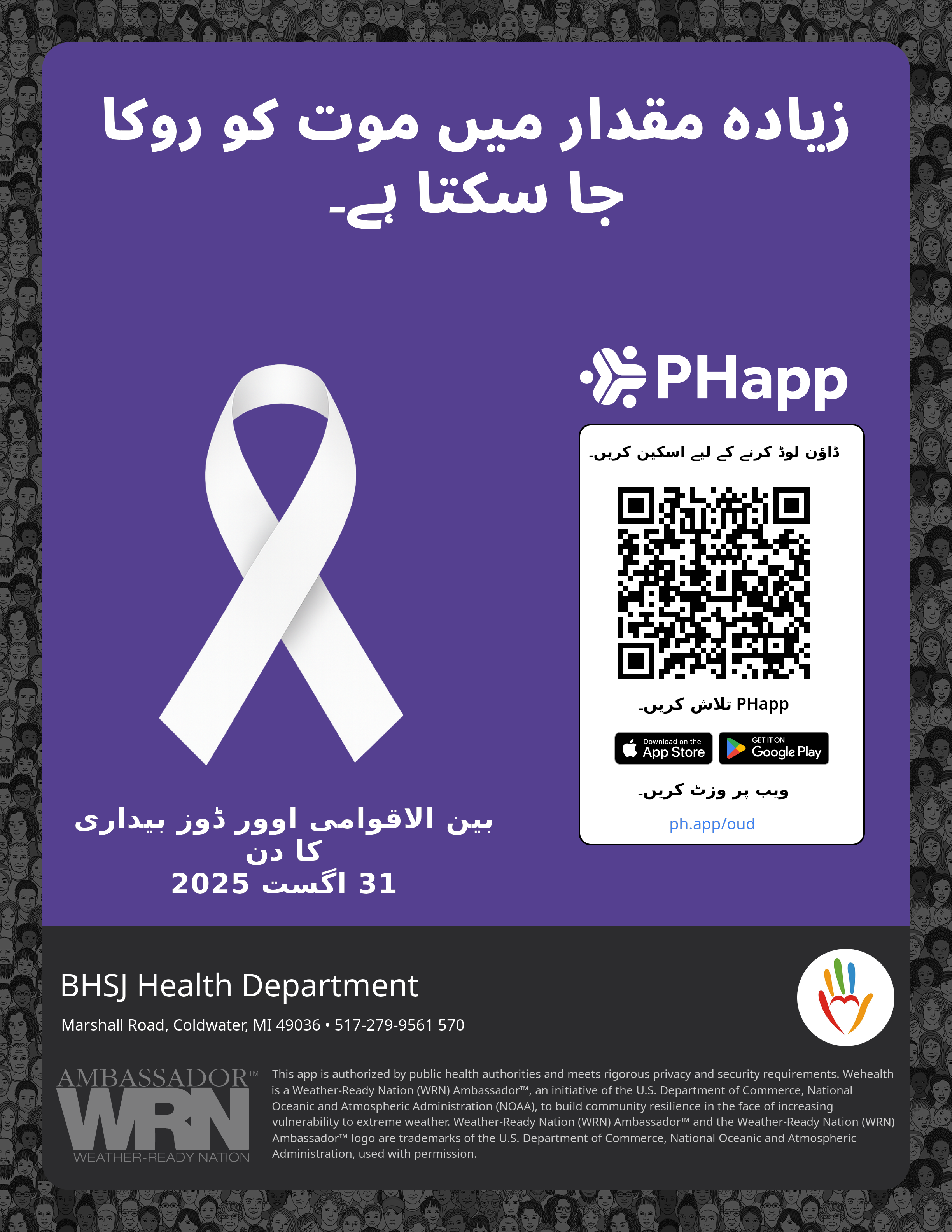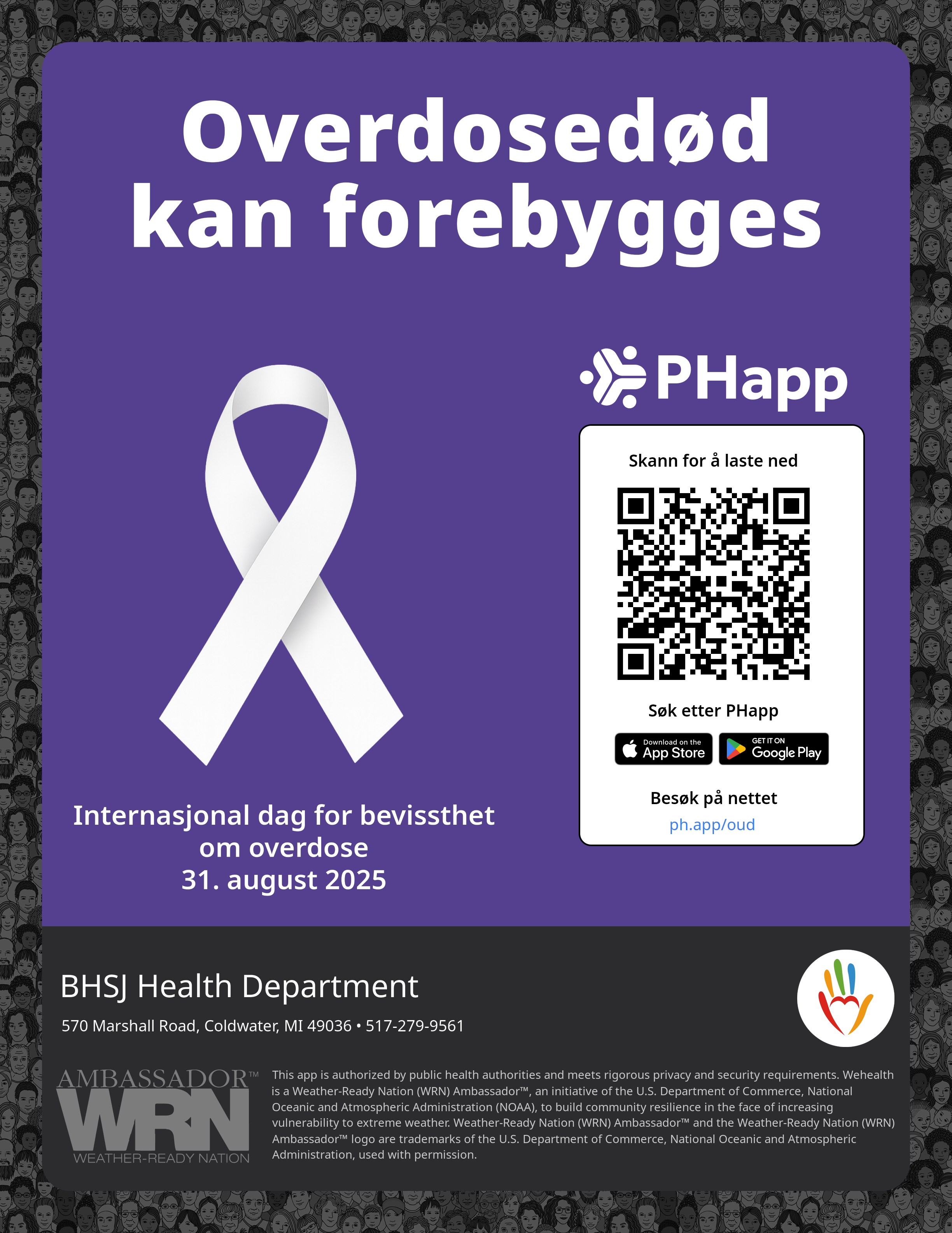 Print this flyer/poster on 8.5×11 paper. The QR code and links are personalized for BHSJ Health Department.