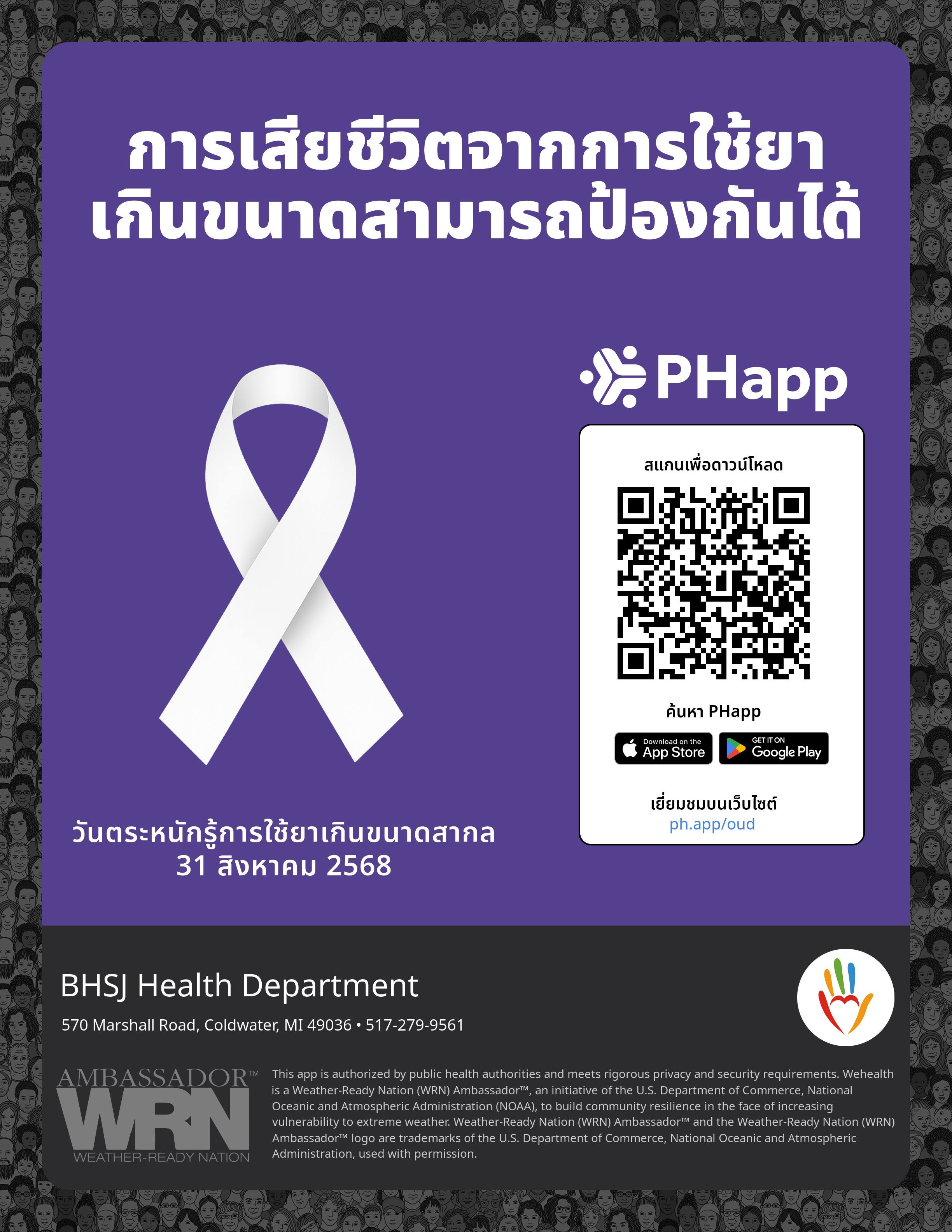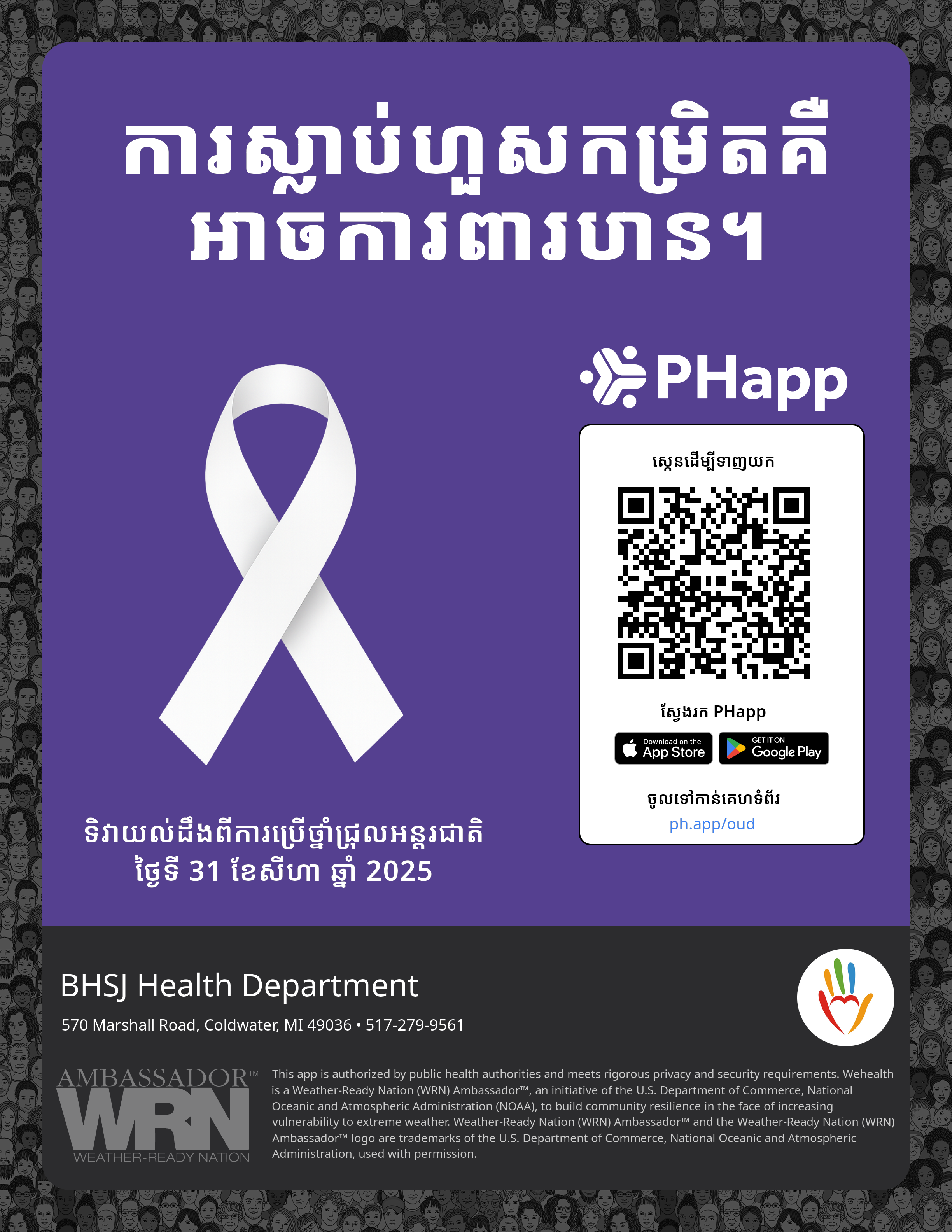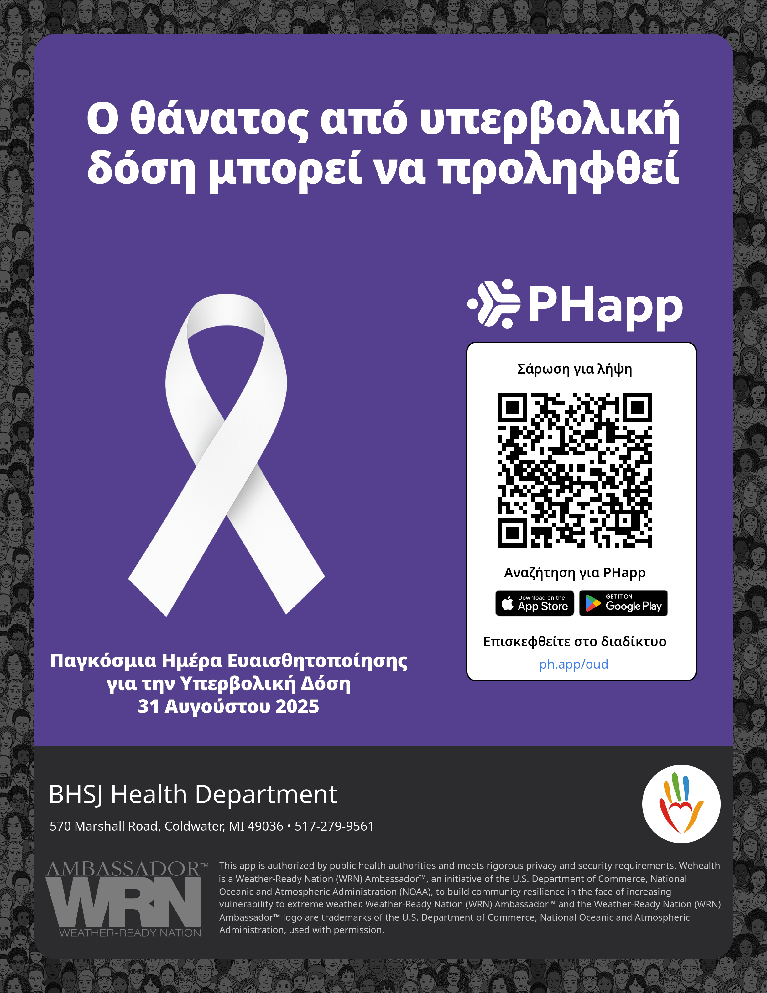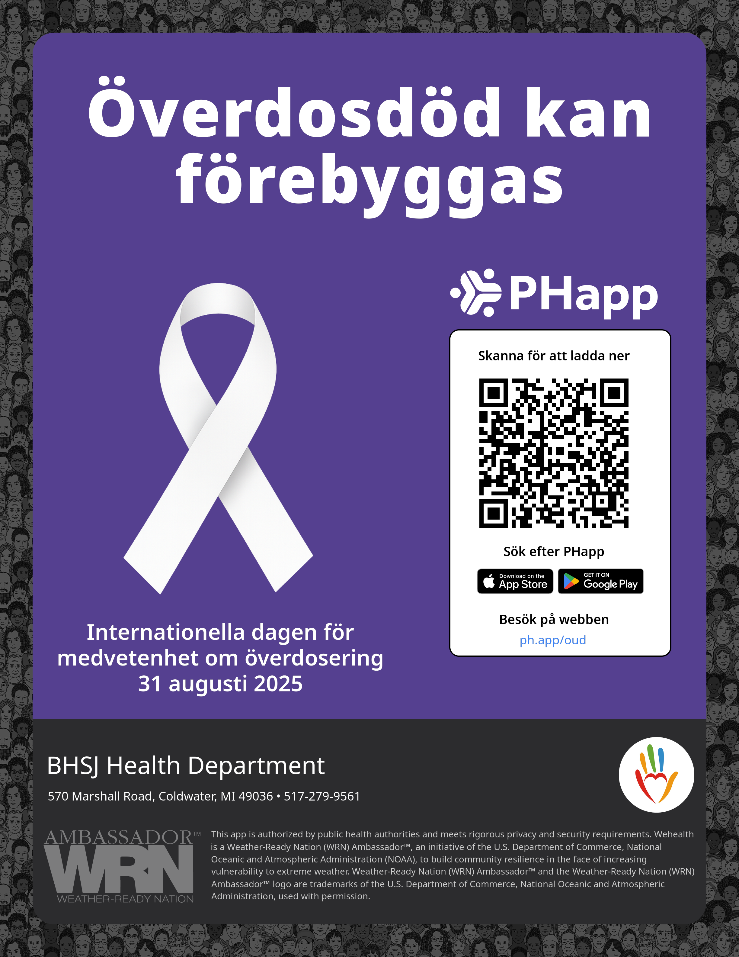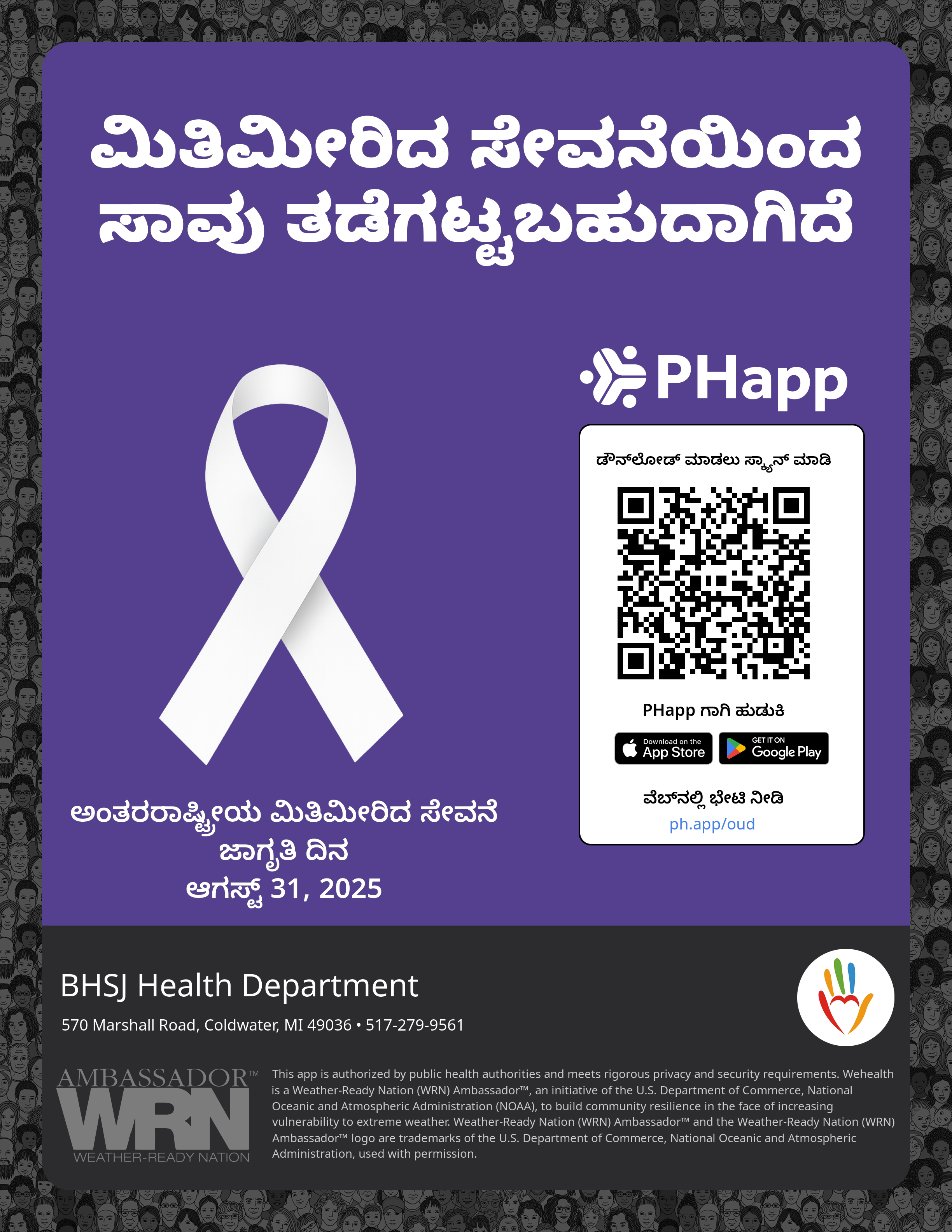 Print this flyer/poster on 8.5×11 paper. The QR code and links are personalized for BHSJ Health Department.