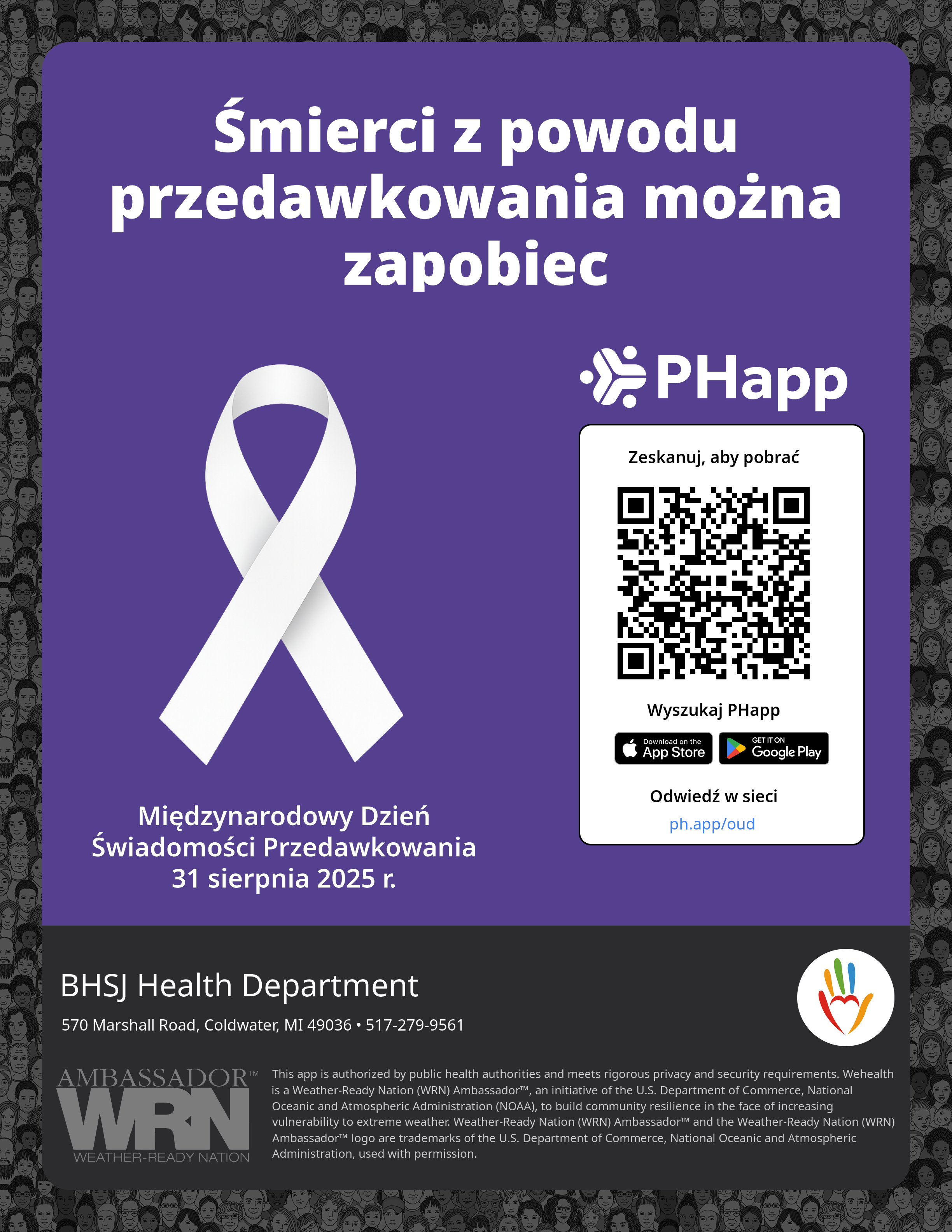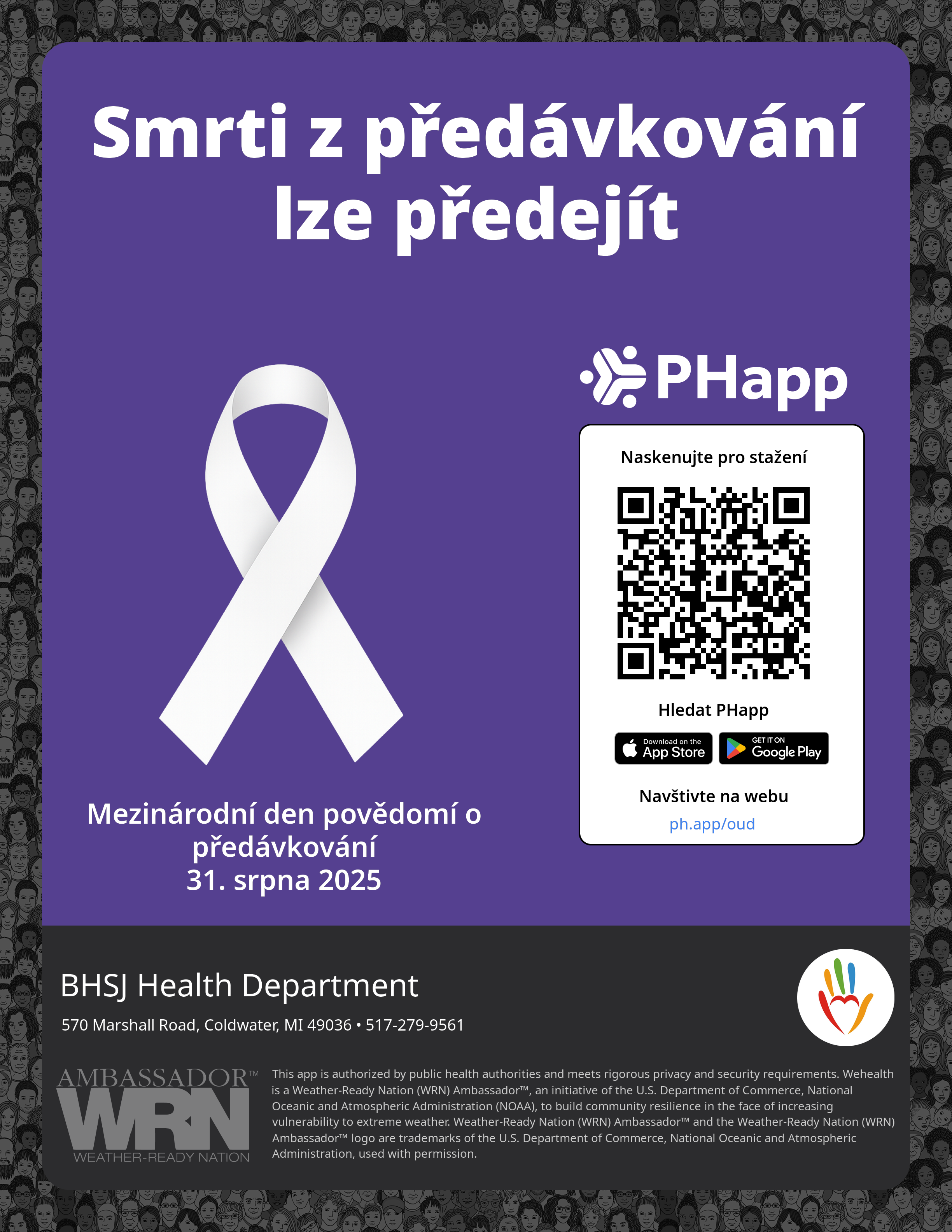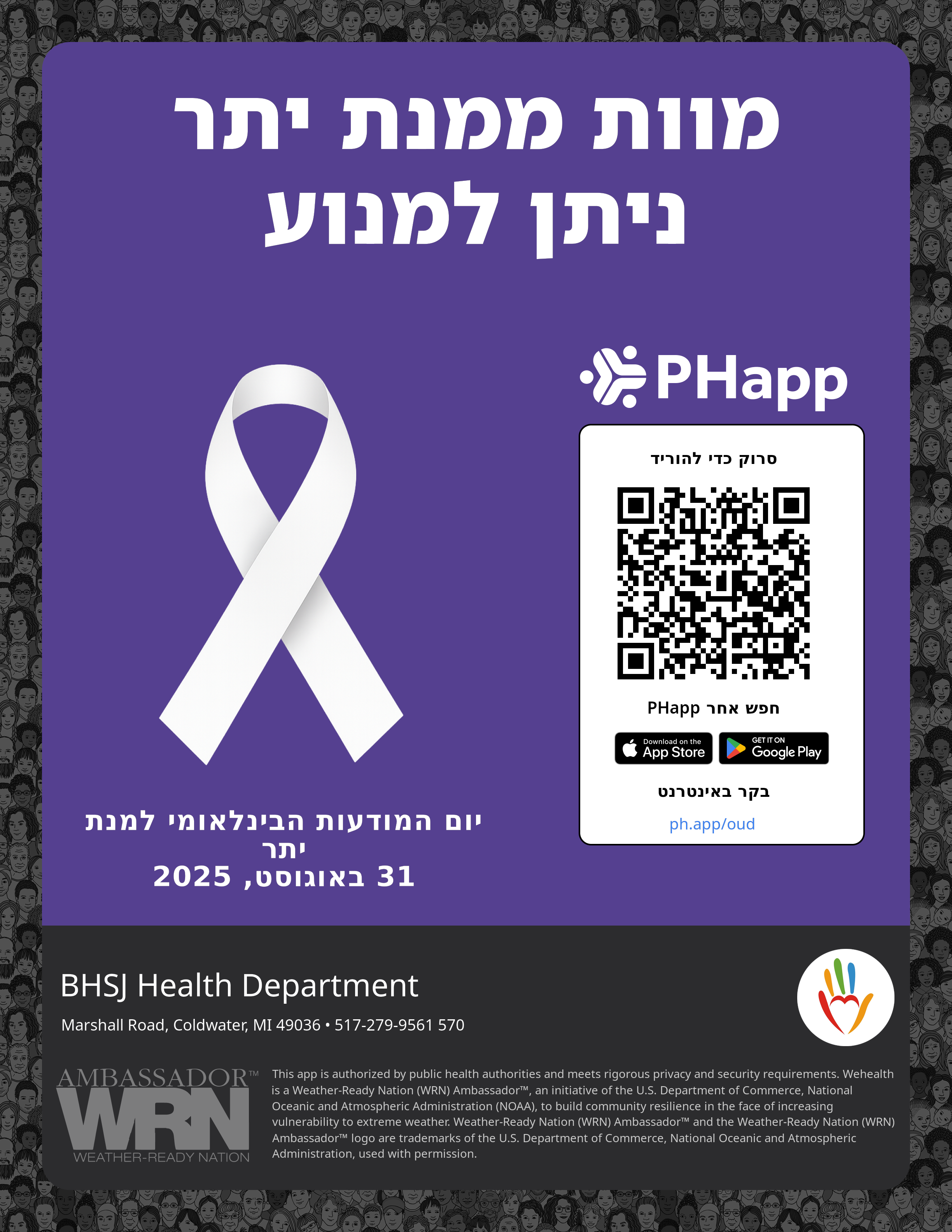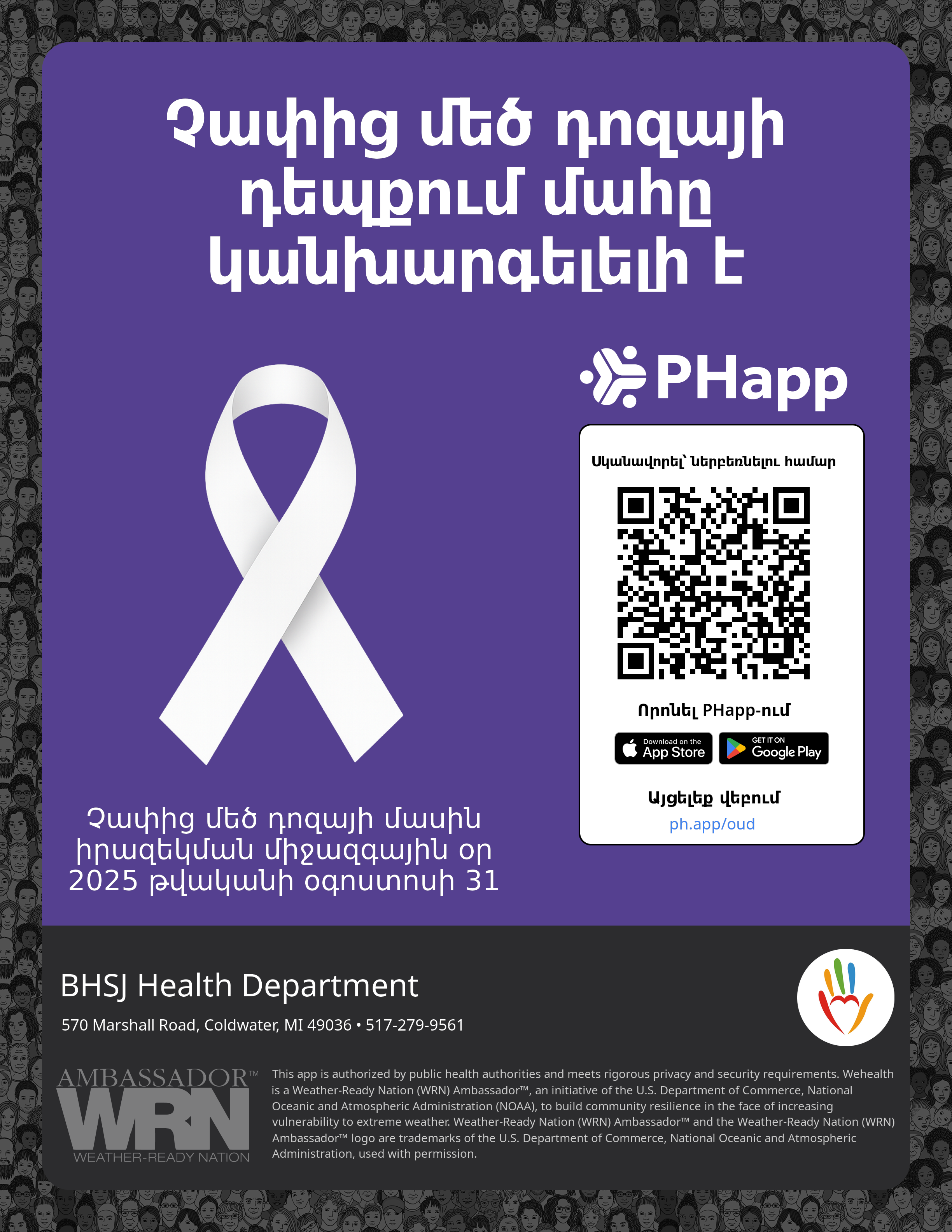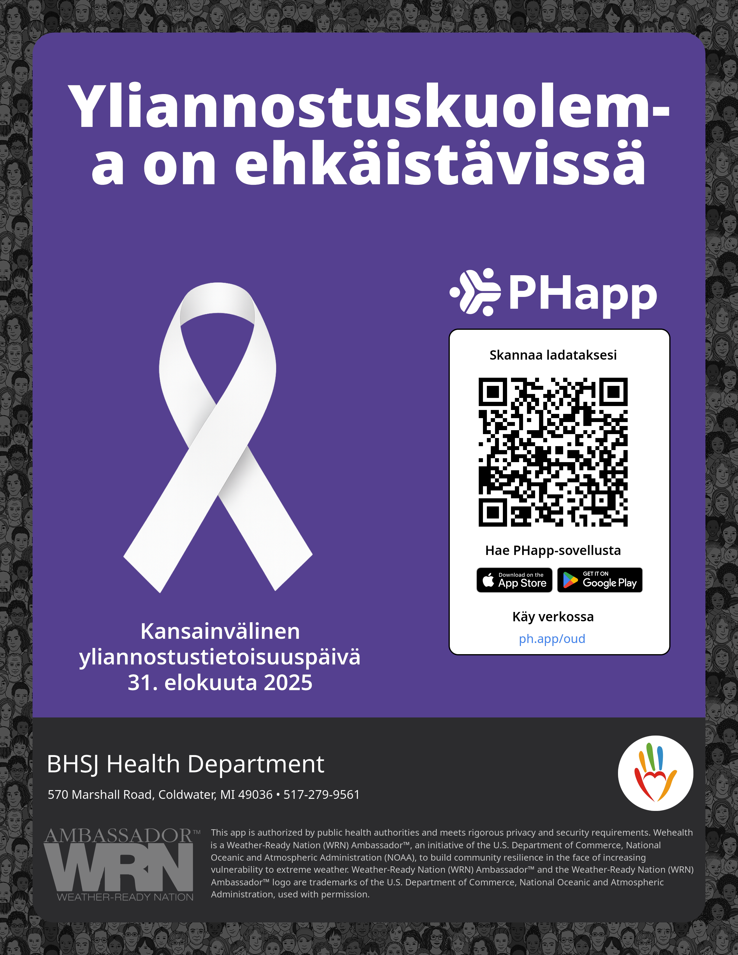 Print this flyer/poster on 8.5×11 paper. The QR code and links are personalized for BHSJ Health Department.