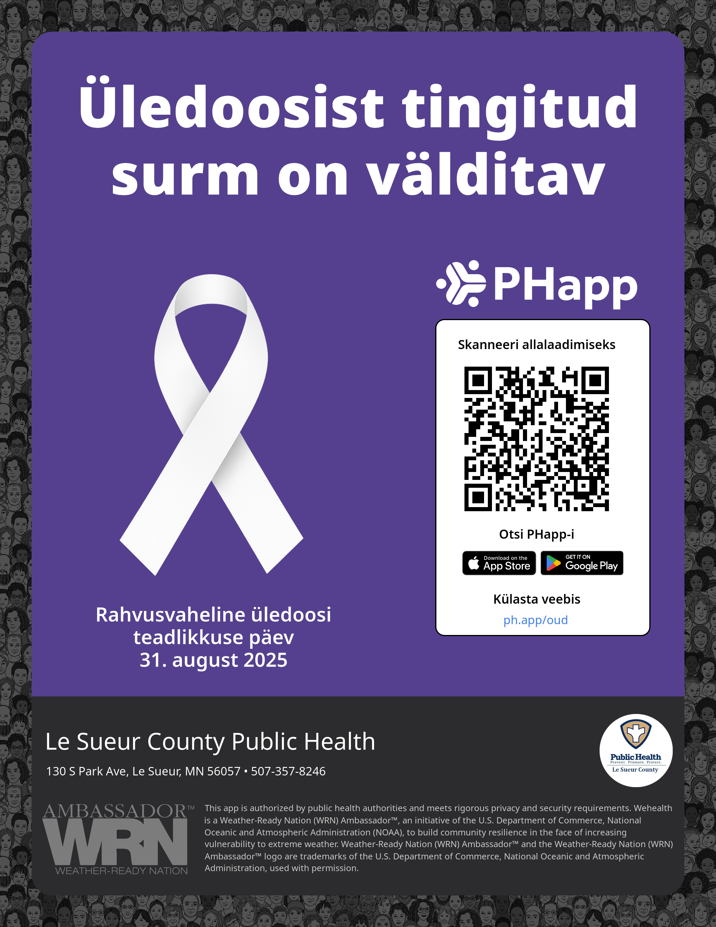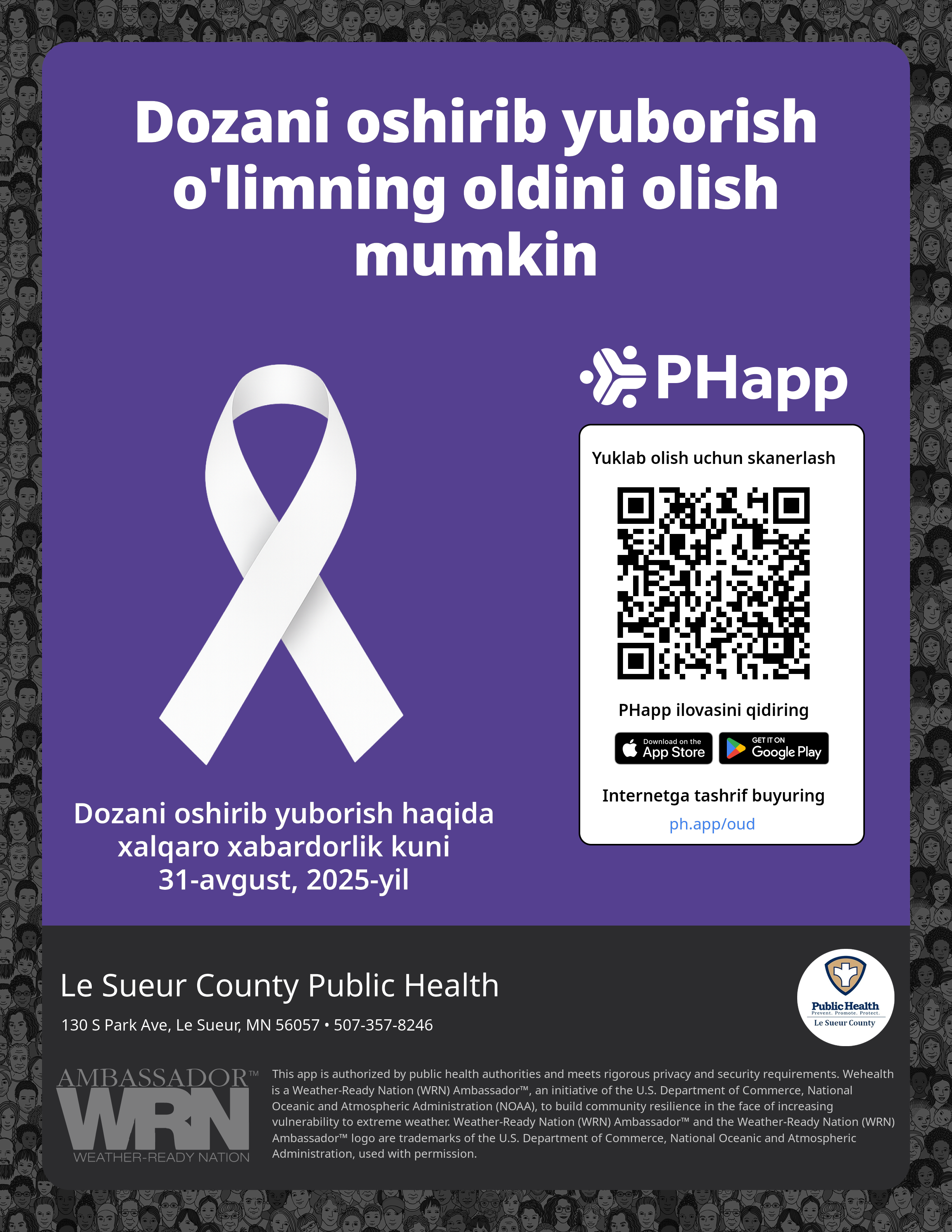 Post this on your own social media platform. The QR code and links are personalized for Le Sueur County Public Health.