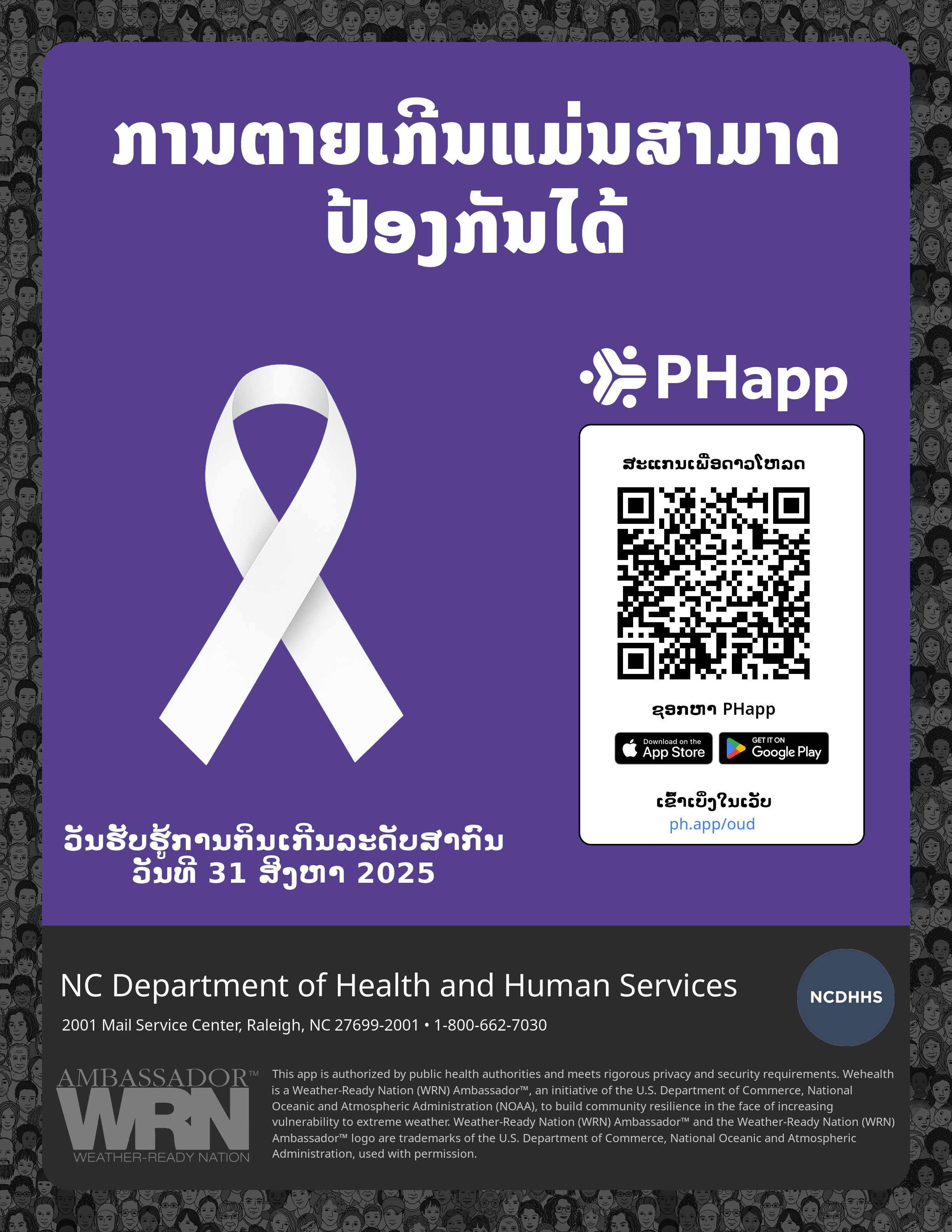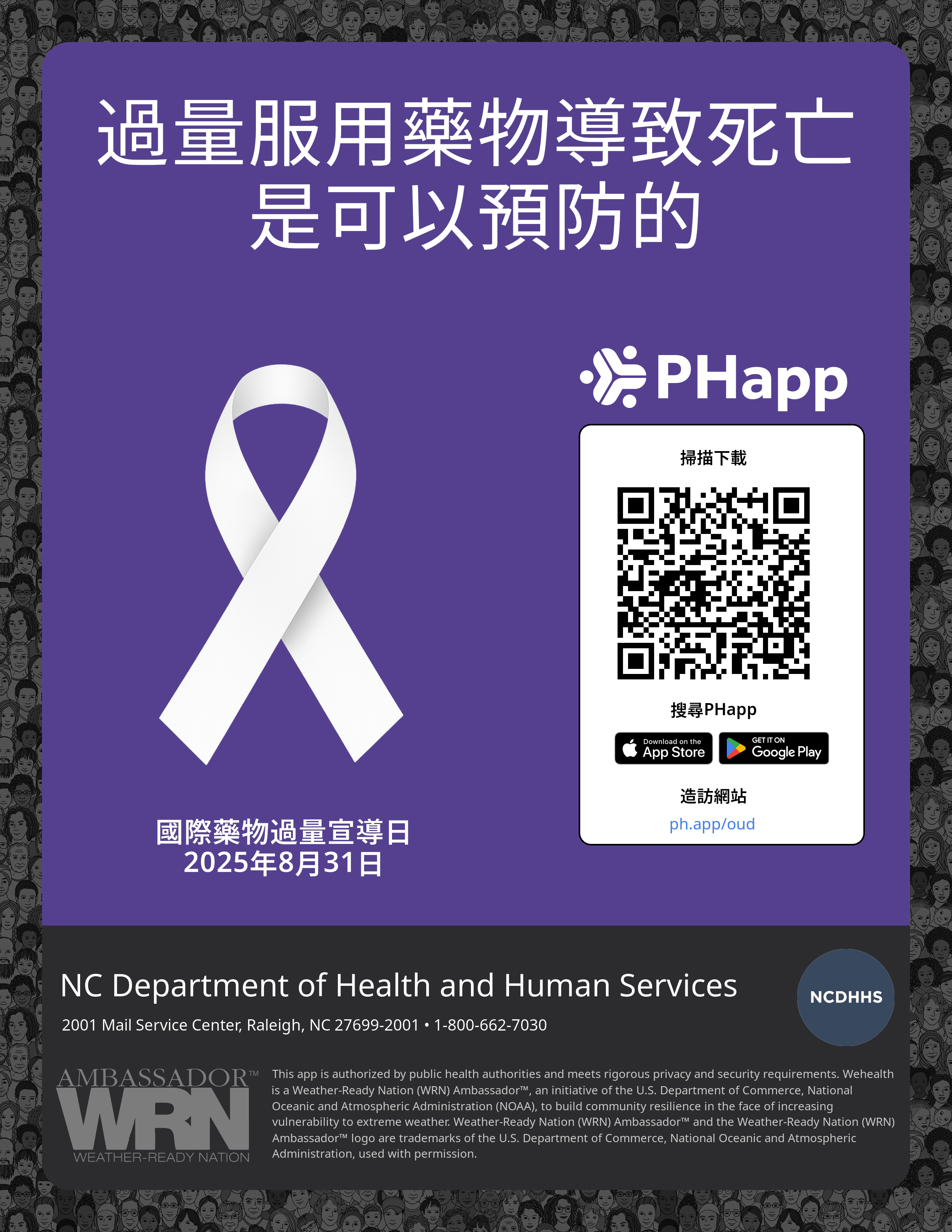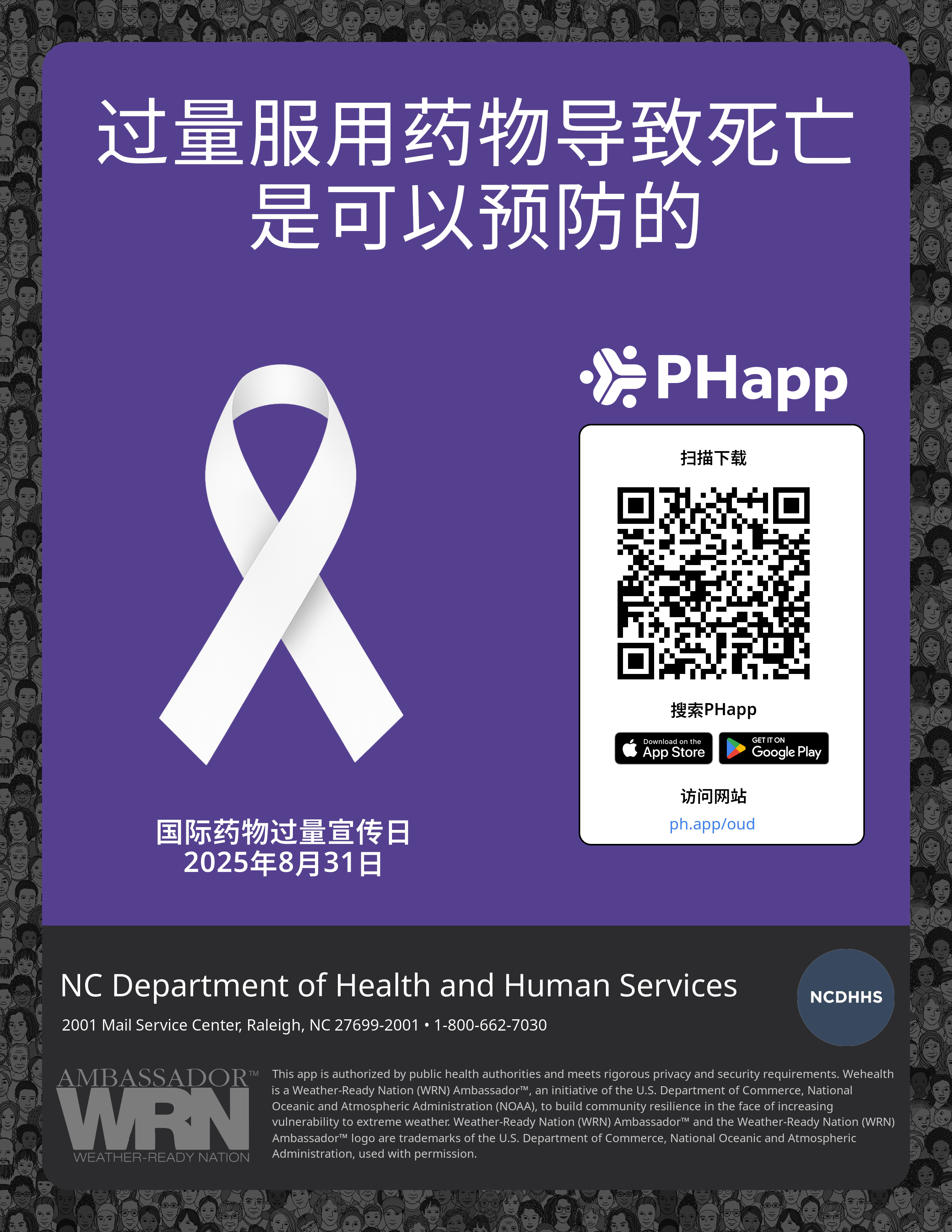 Print this flyer/poster on 8.5×11 paper. The QR code and links are personalized for NC Department of Health and Human Services.