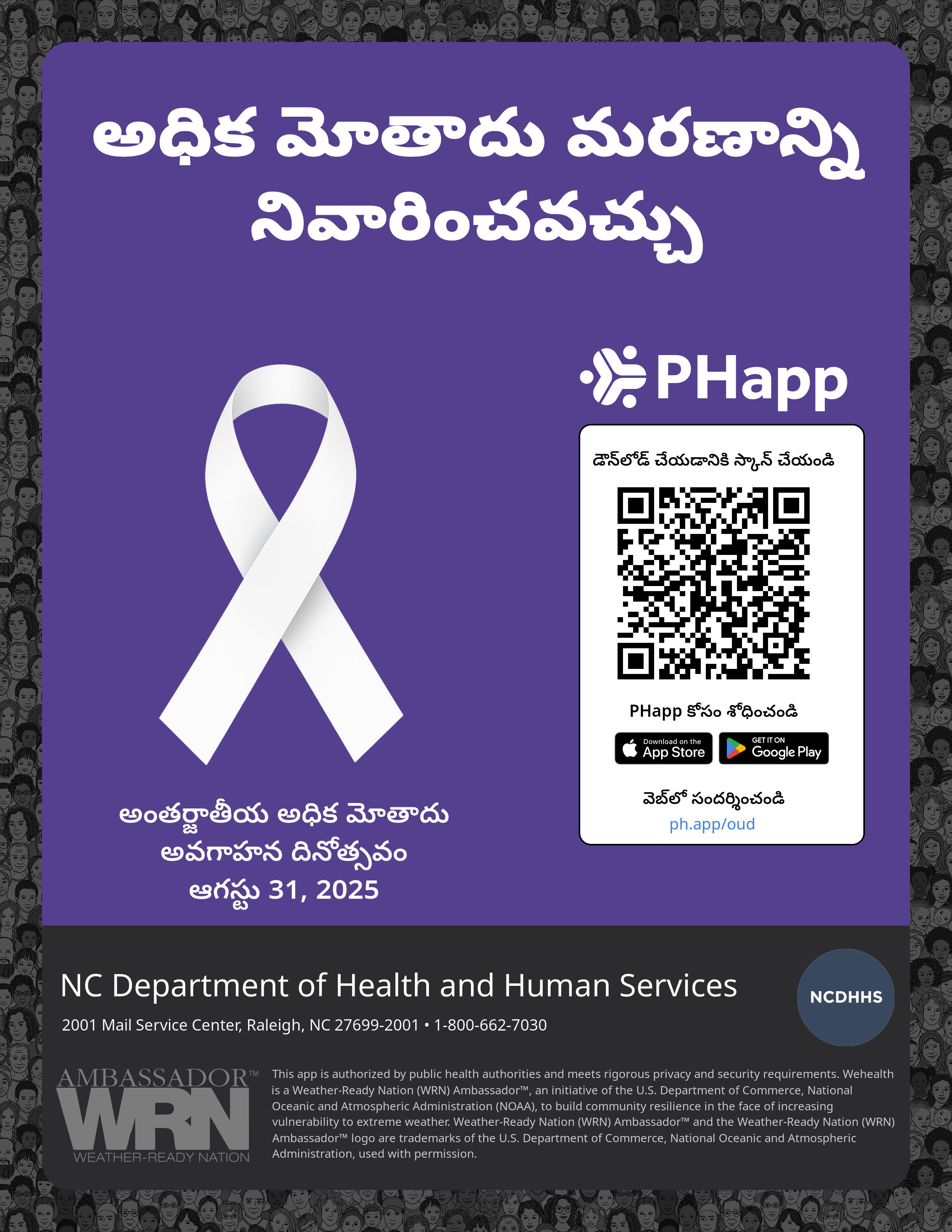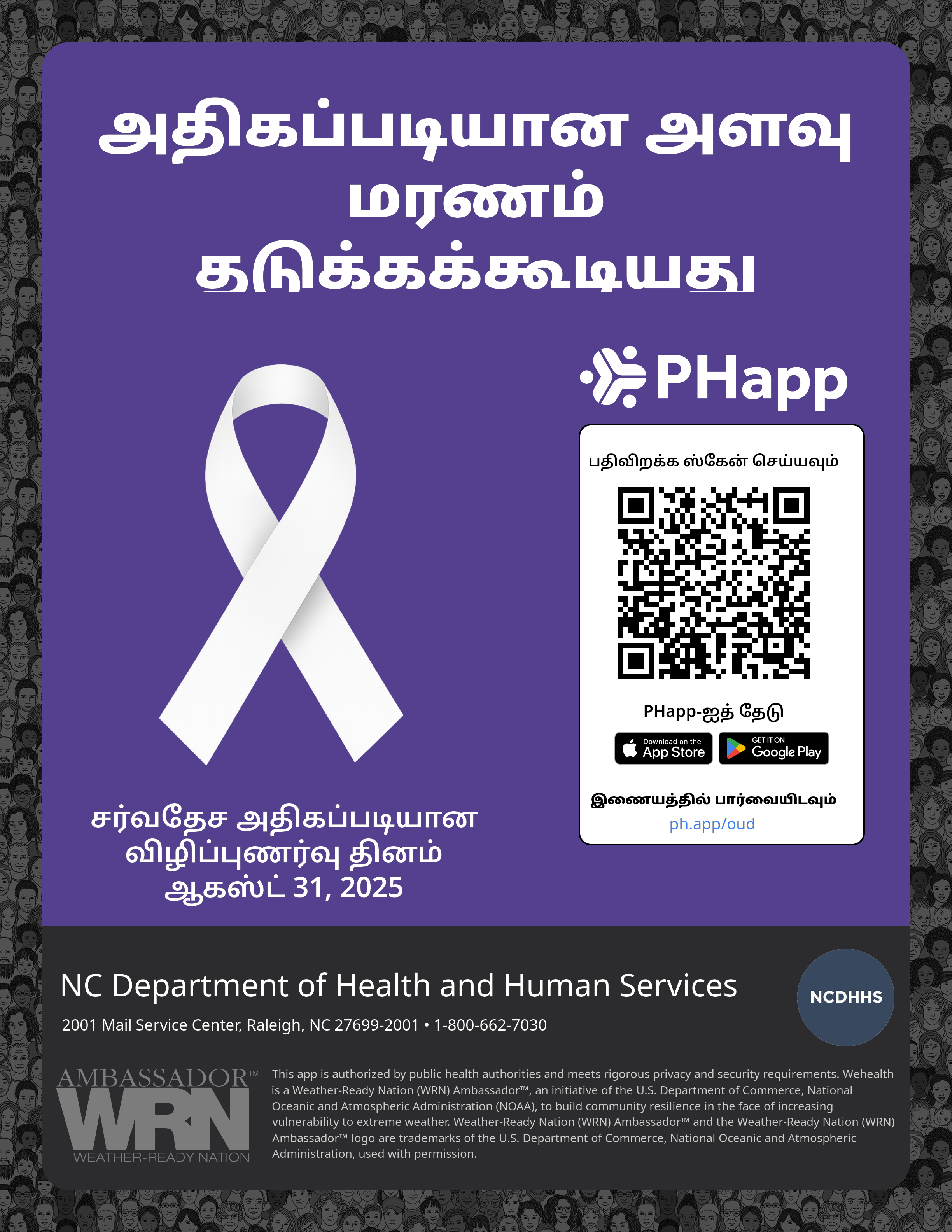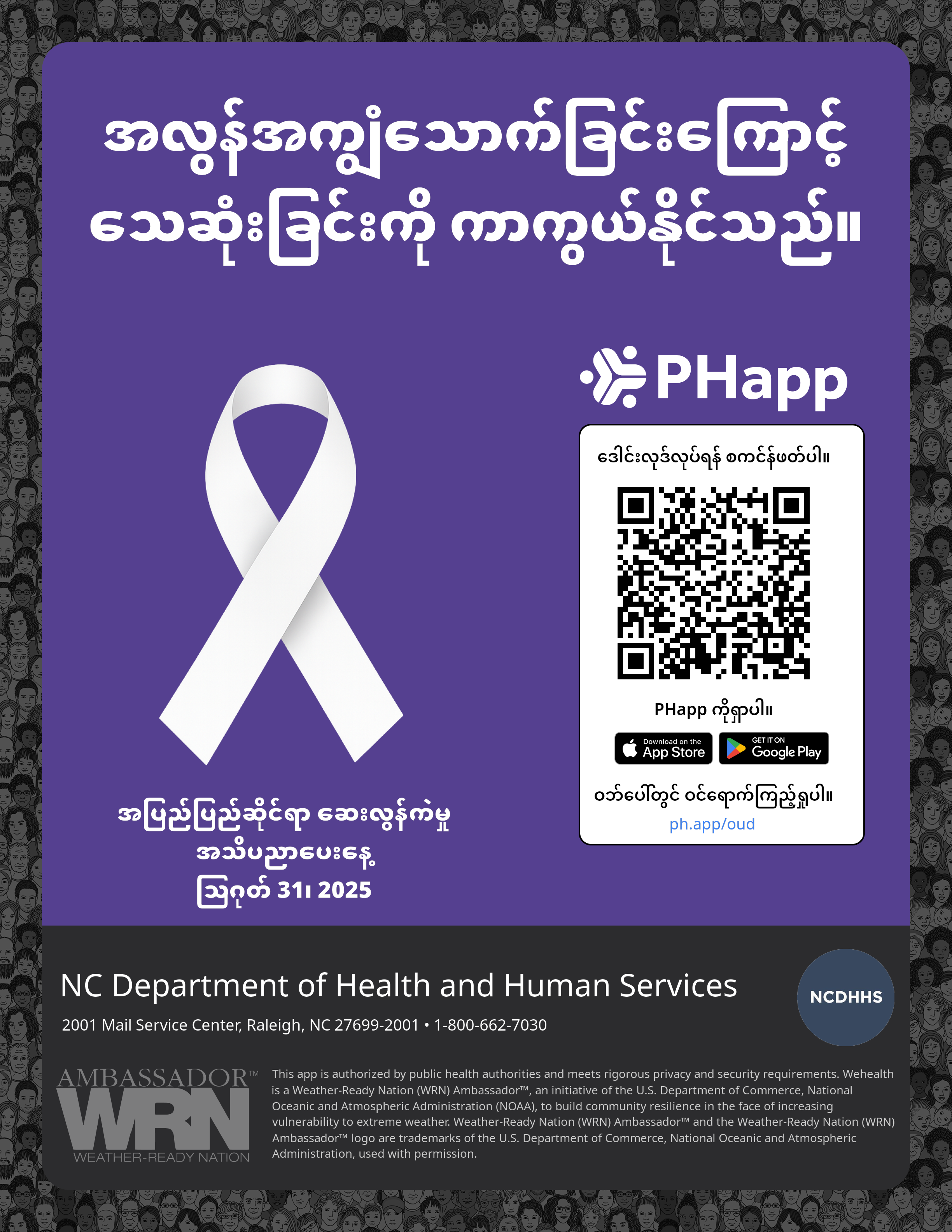 Print this flyer/poster on 8.5×11 paper. The QR code and links are personalized for NC Department of Health and Human Services.