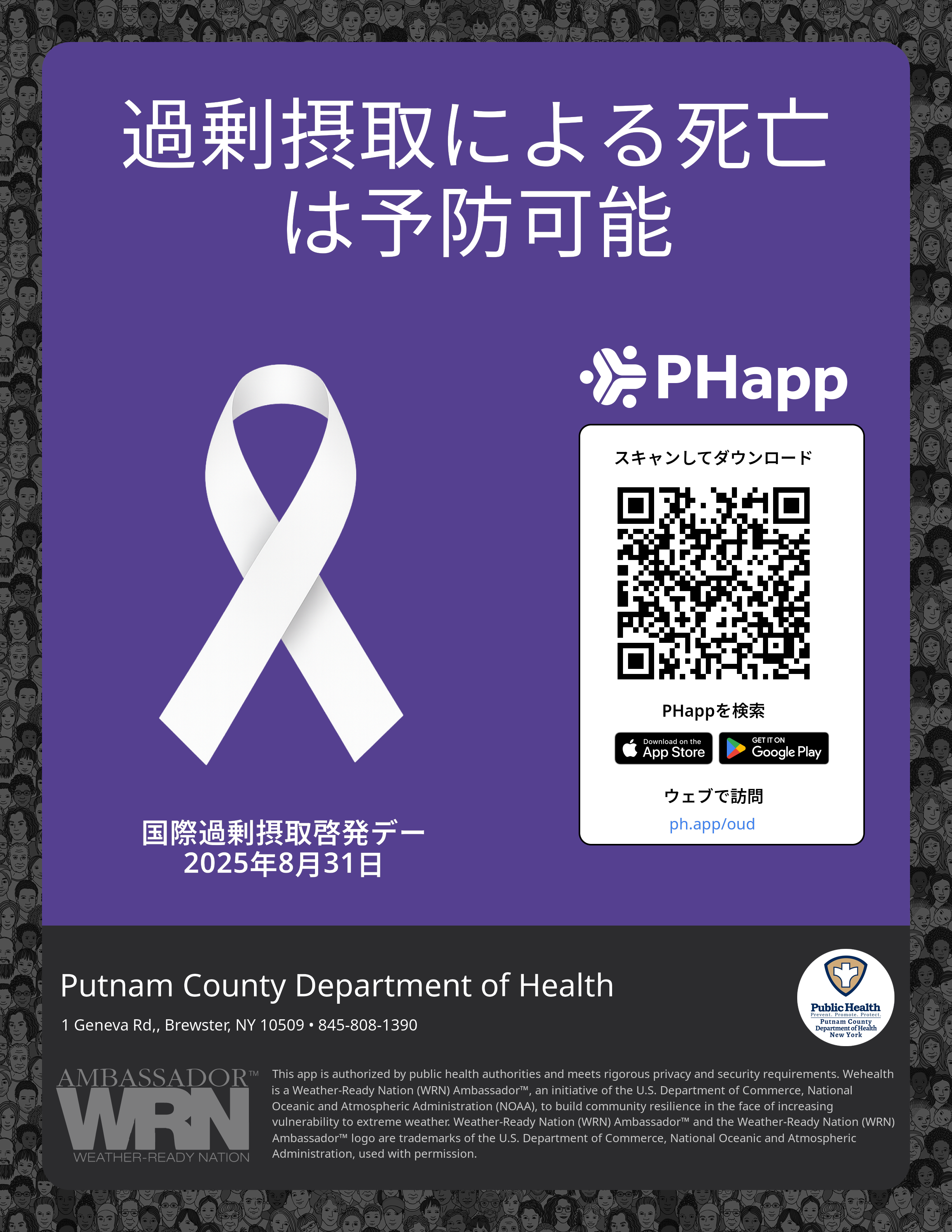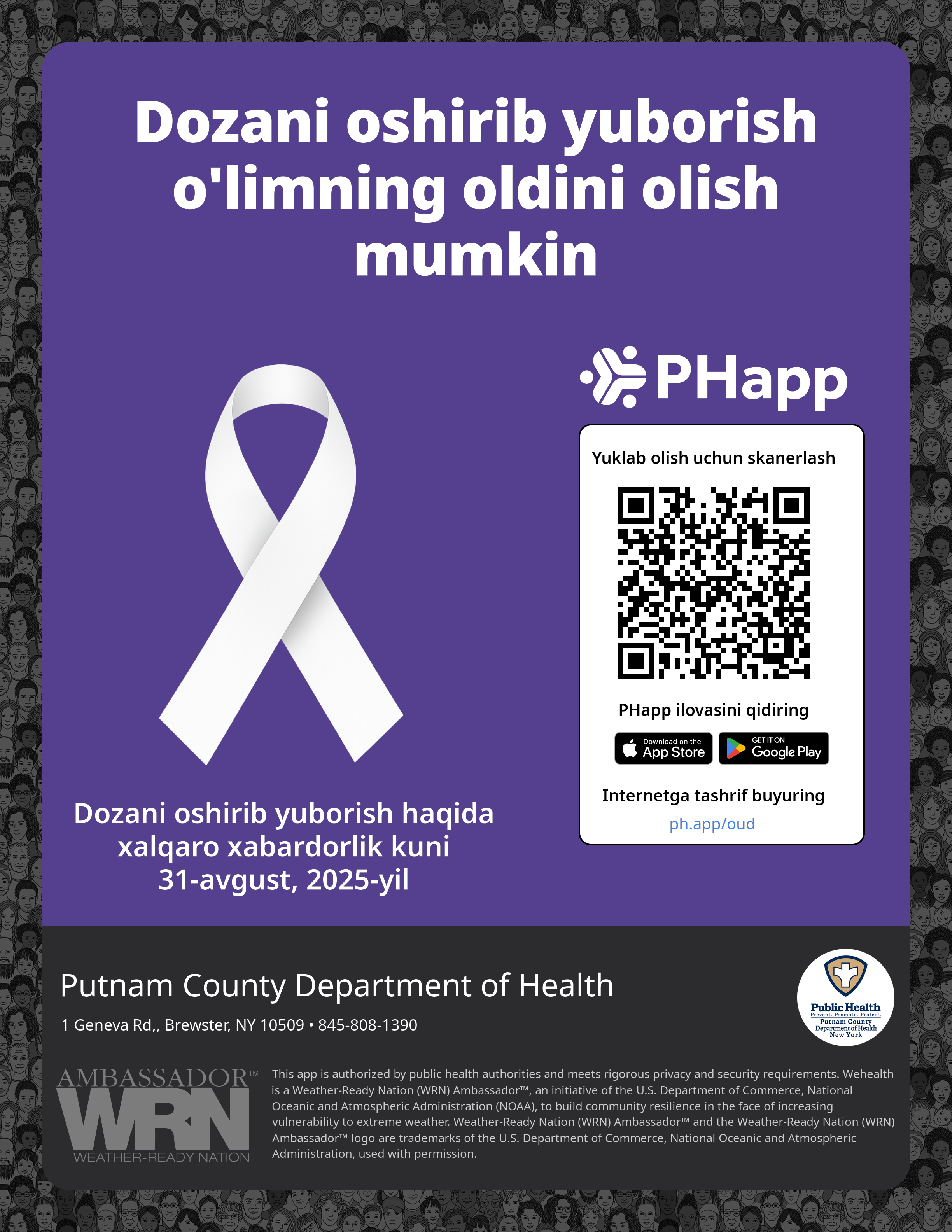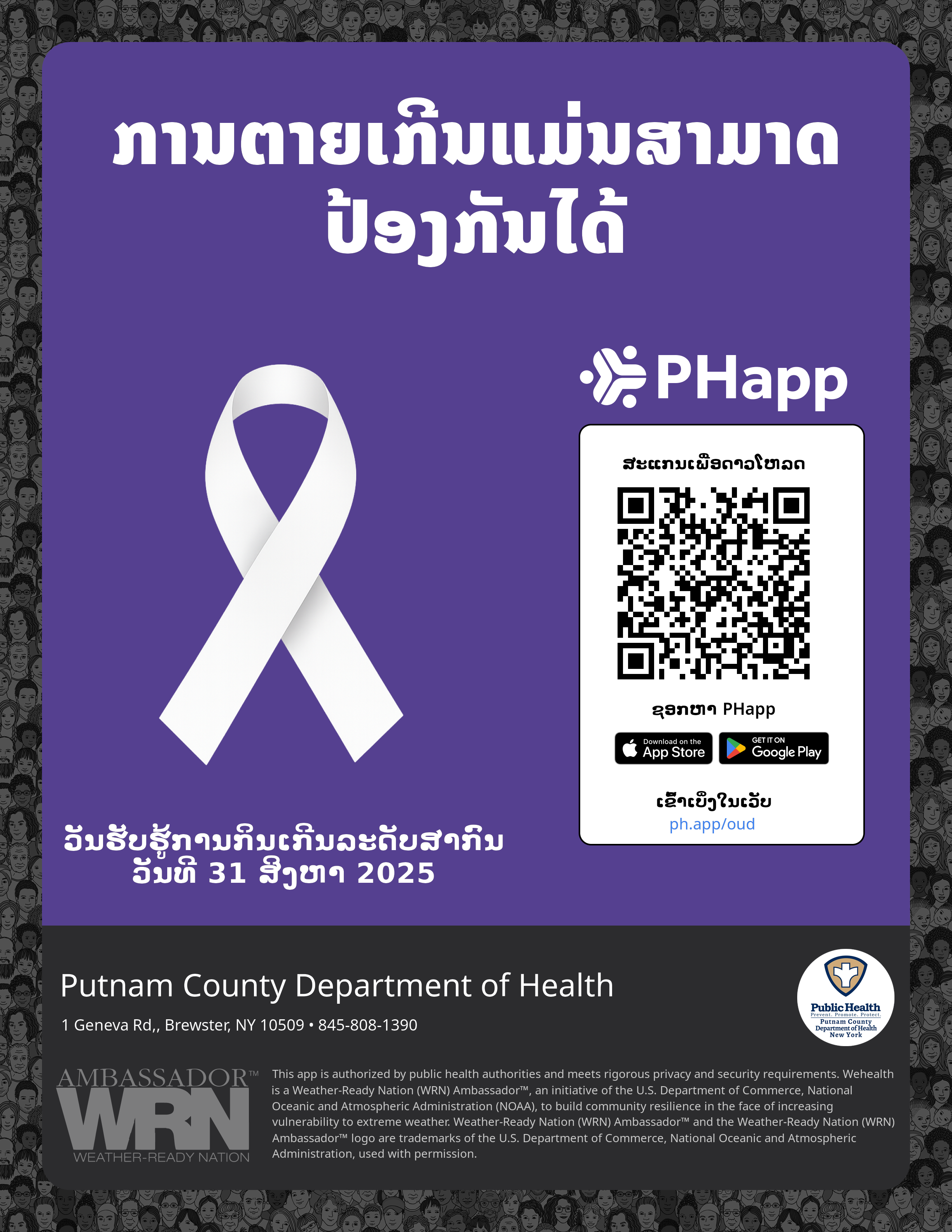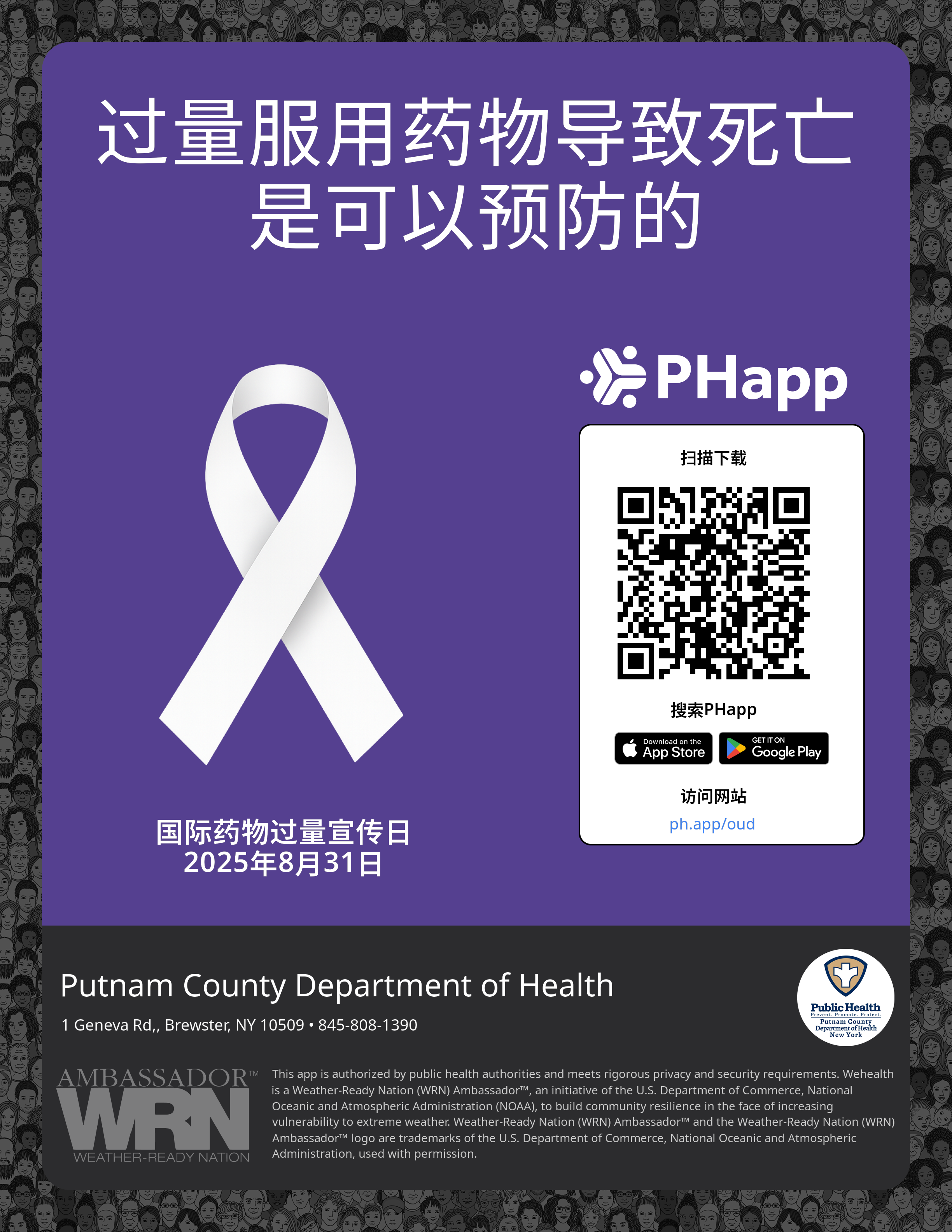 Print this flyer/poster on 8.5×11 paper. The QR code and links are personalized for Putnam County Department of Health.
