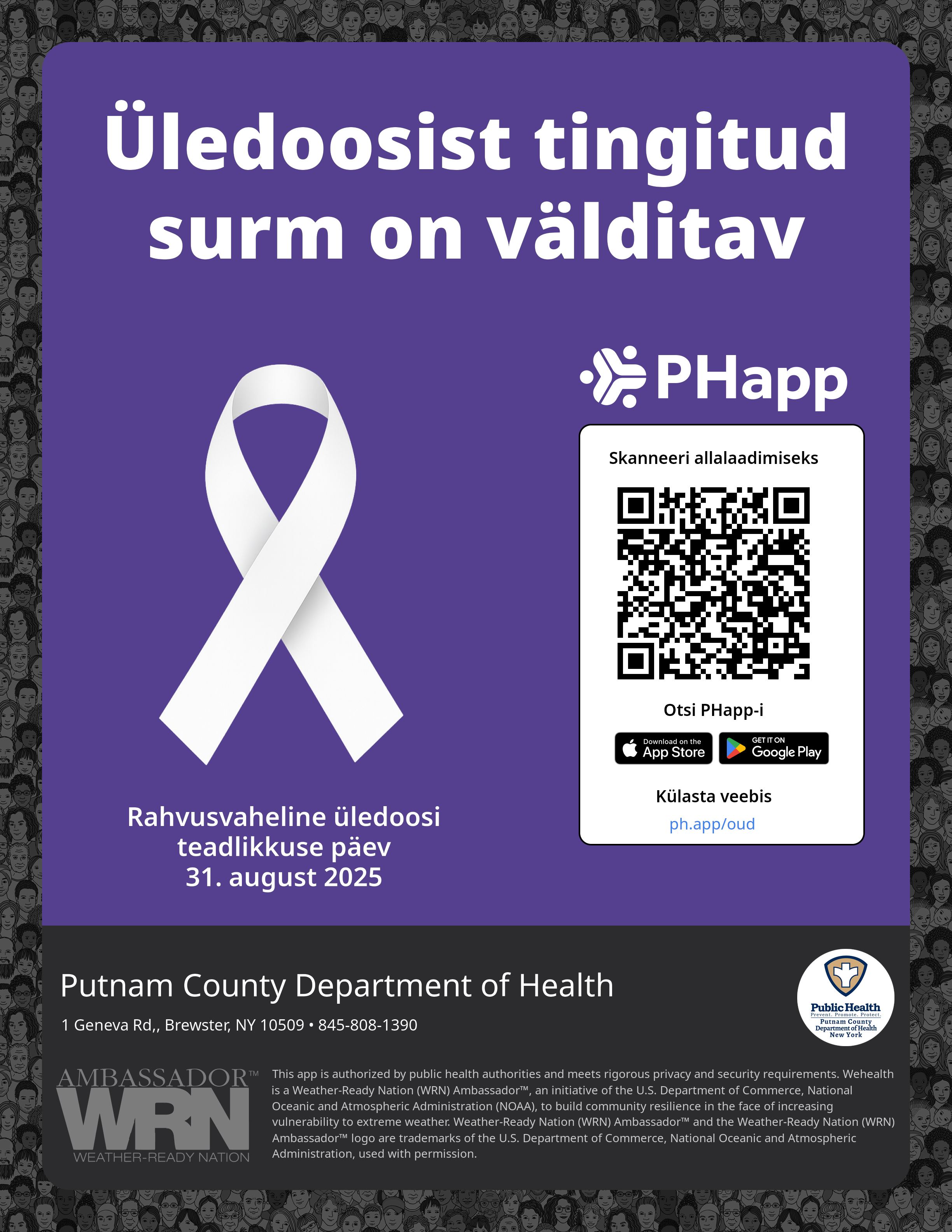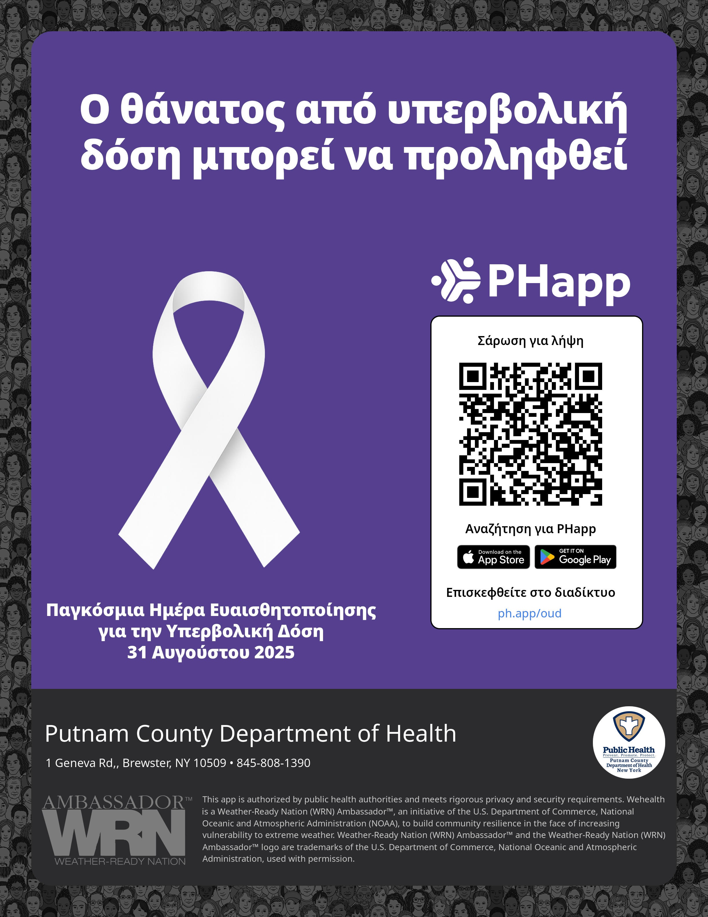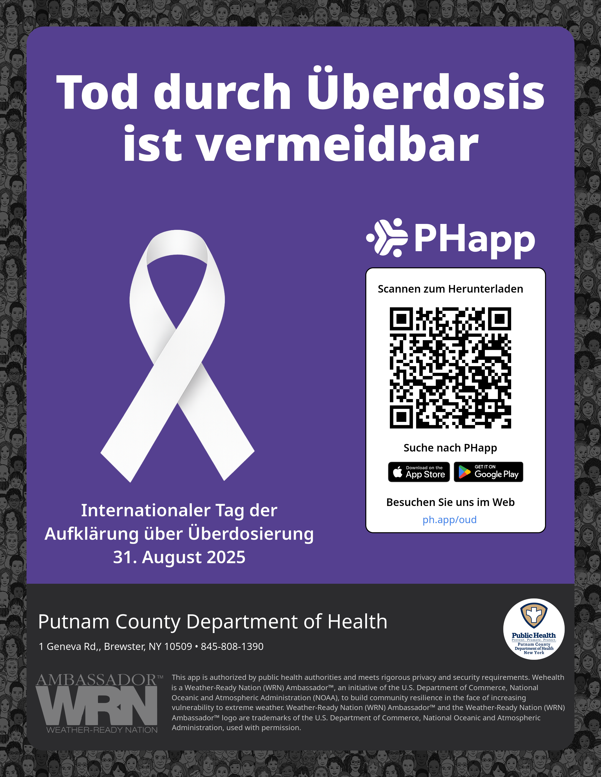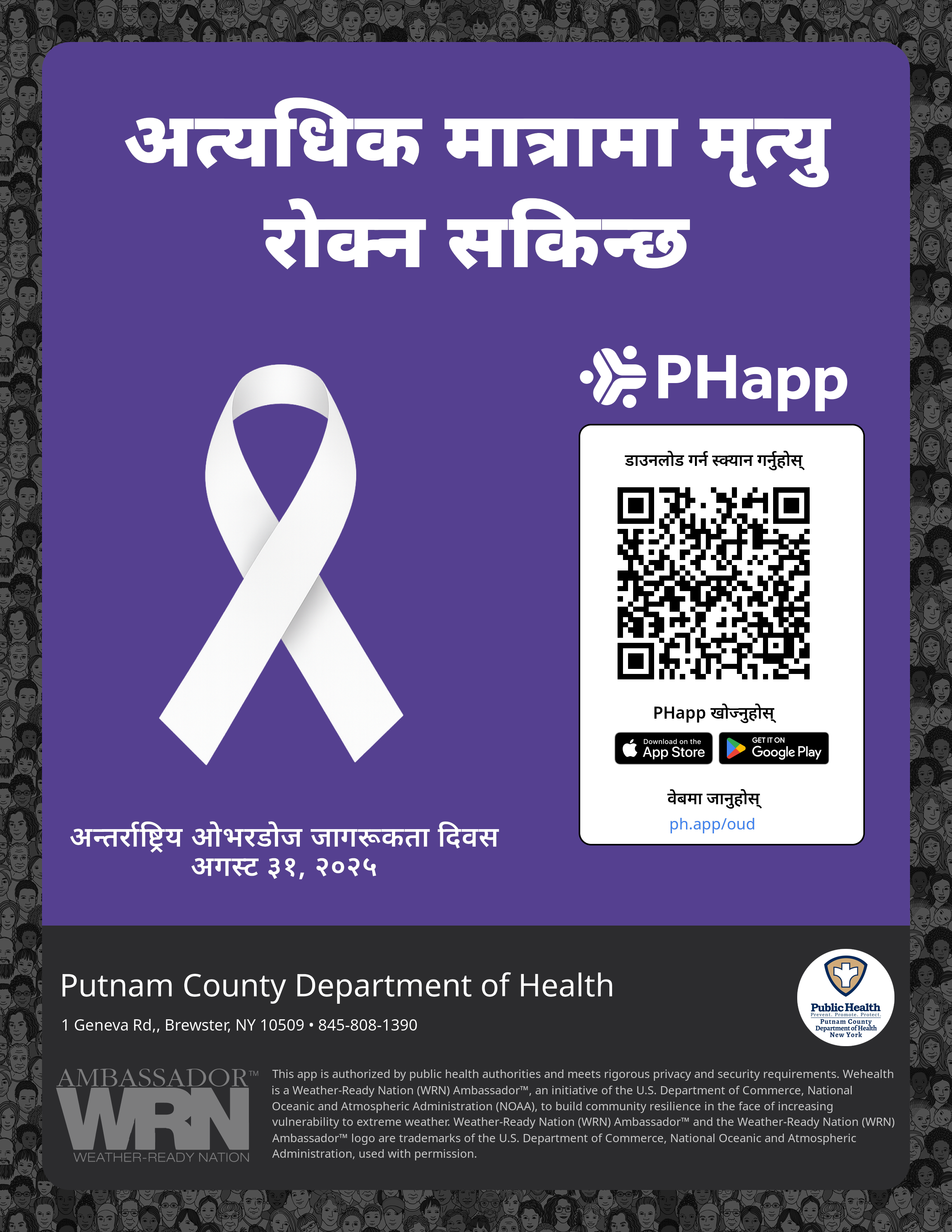Print this flyer/poster on 8.5×11 paper. The QR code and links are personalized for Putnam County Department of Health.