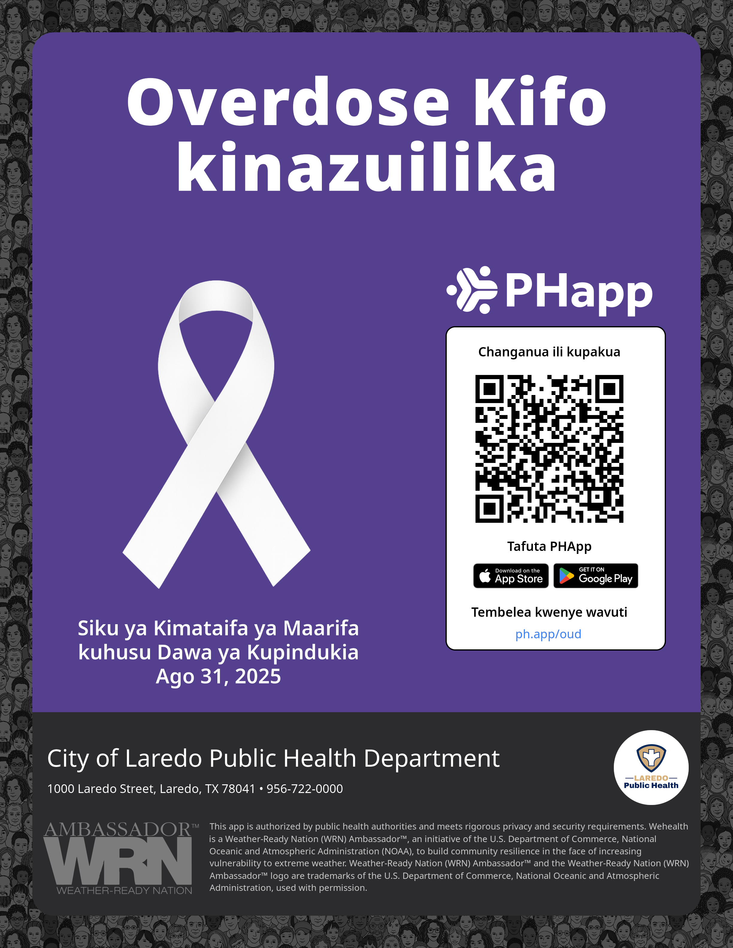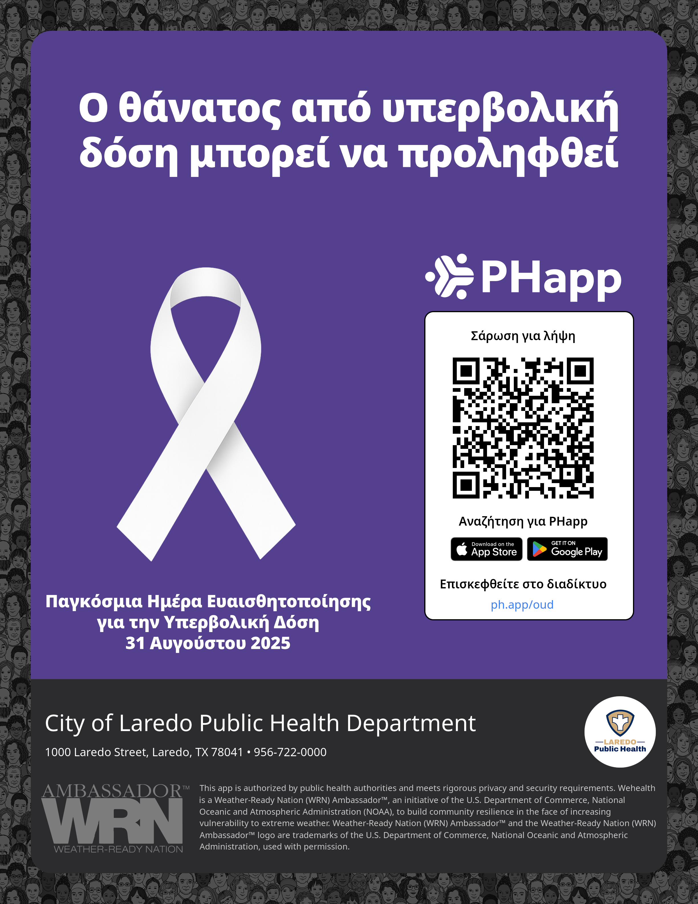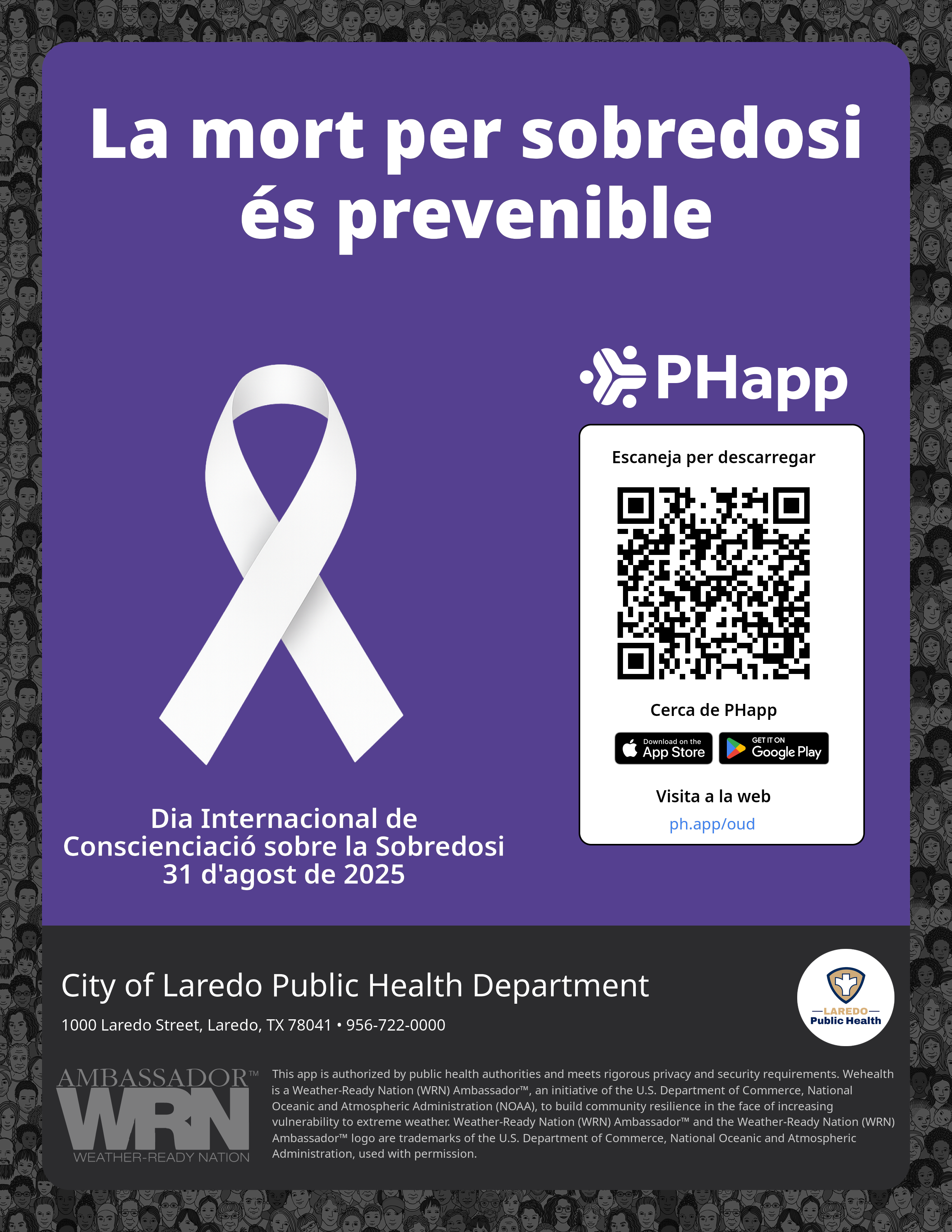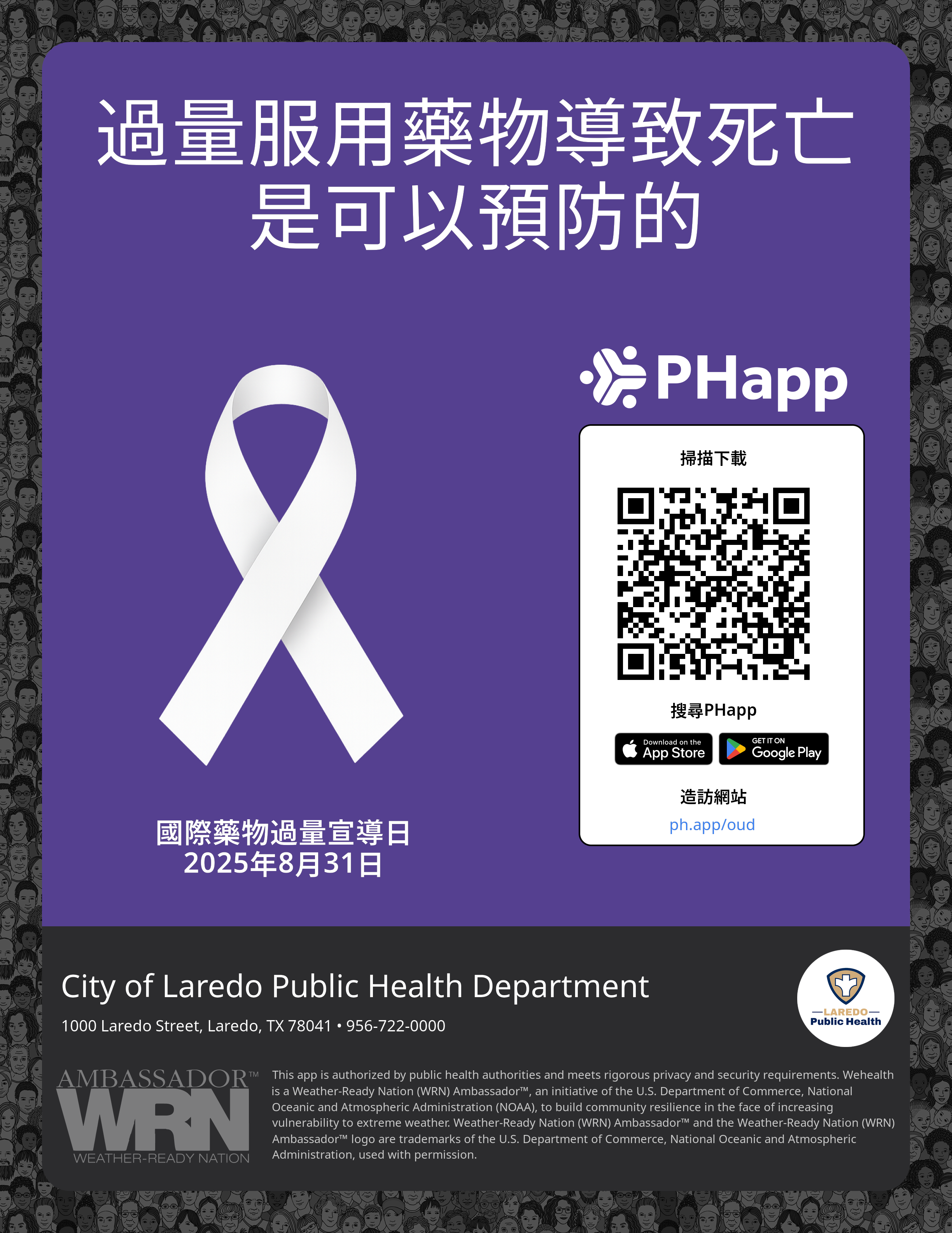 Print this flyer/poster on 8.5×11 paper. The QR code and links are personalized for City of Laredo Public Health Department.