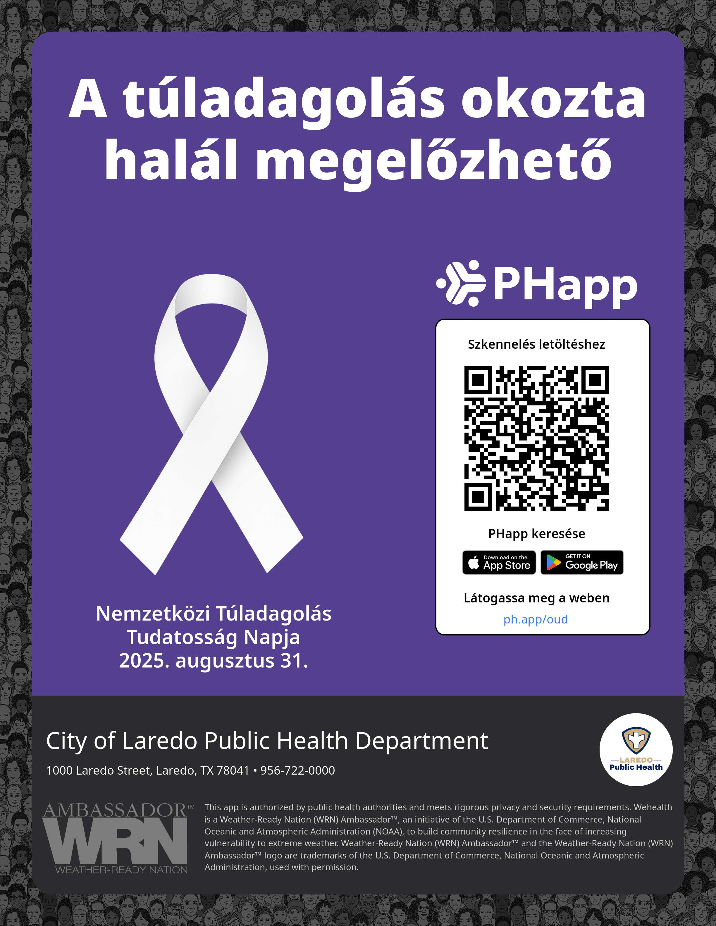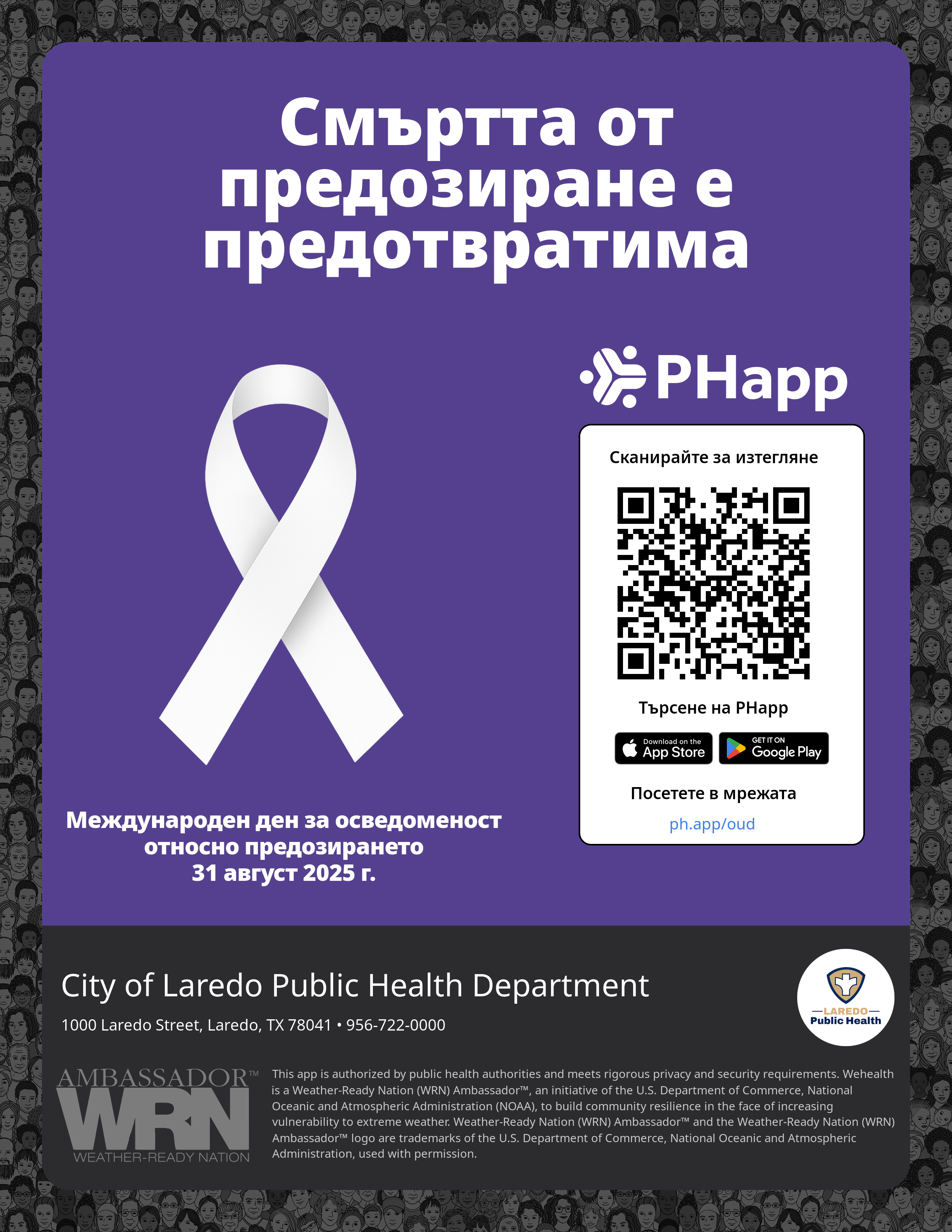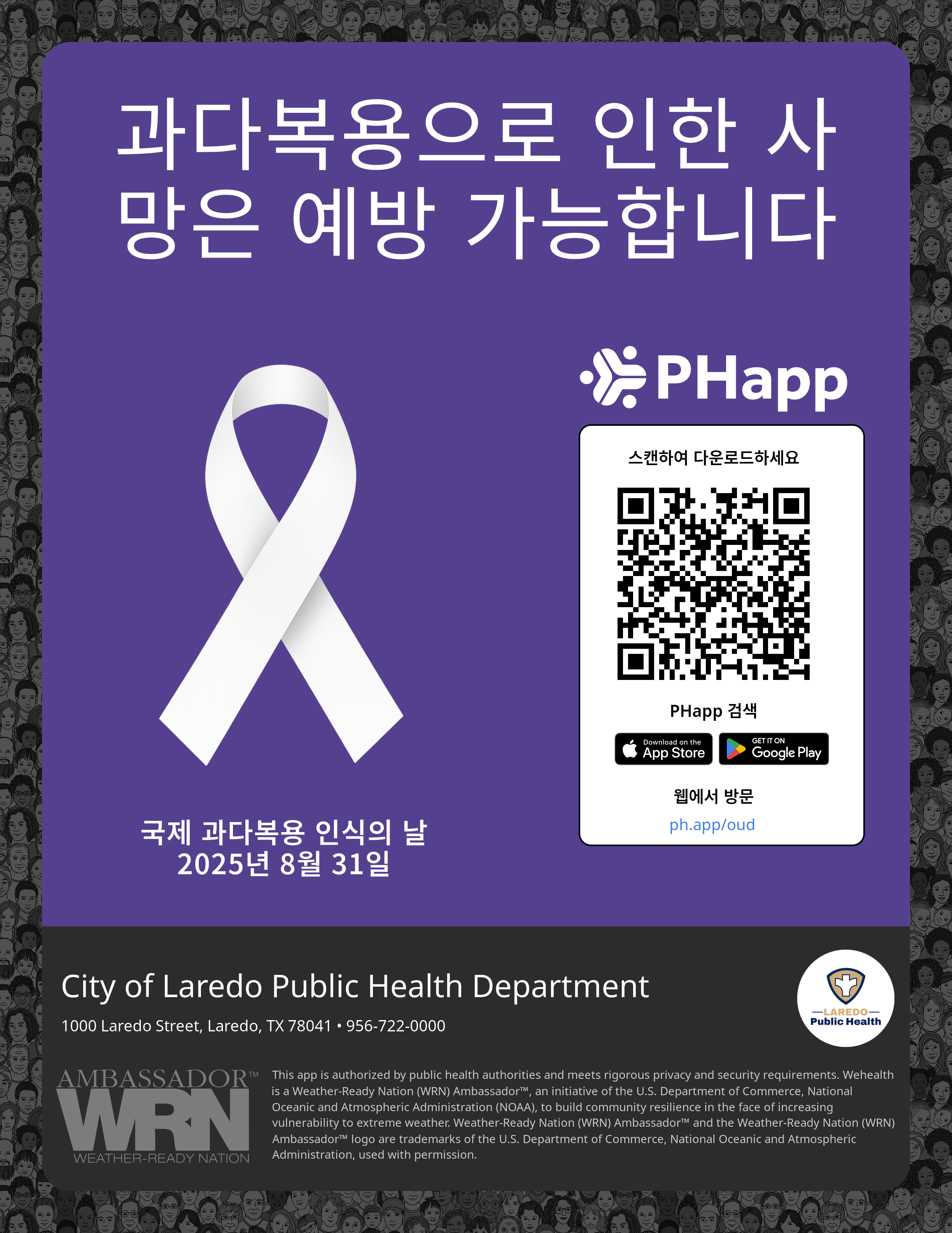 Print this flyer/poster on 8.5×11 paper. The QR code and links are personalized for City of Laredo Public Health Department.