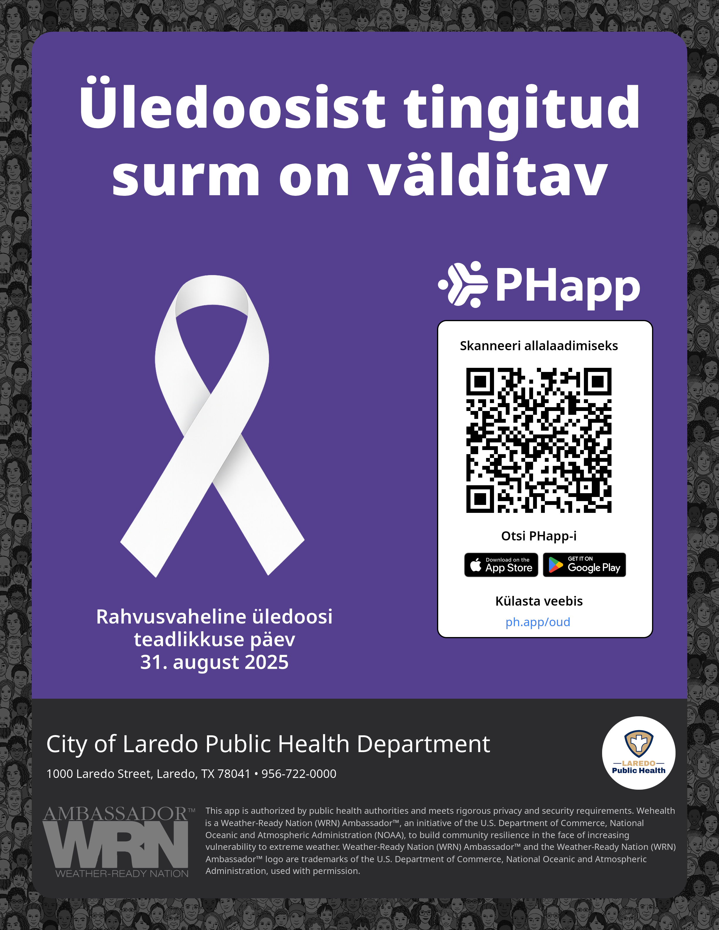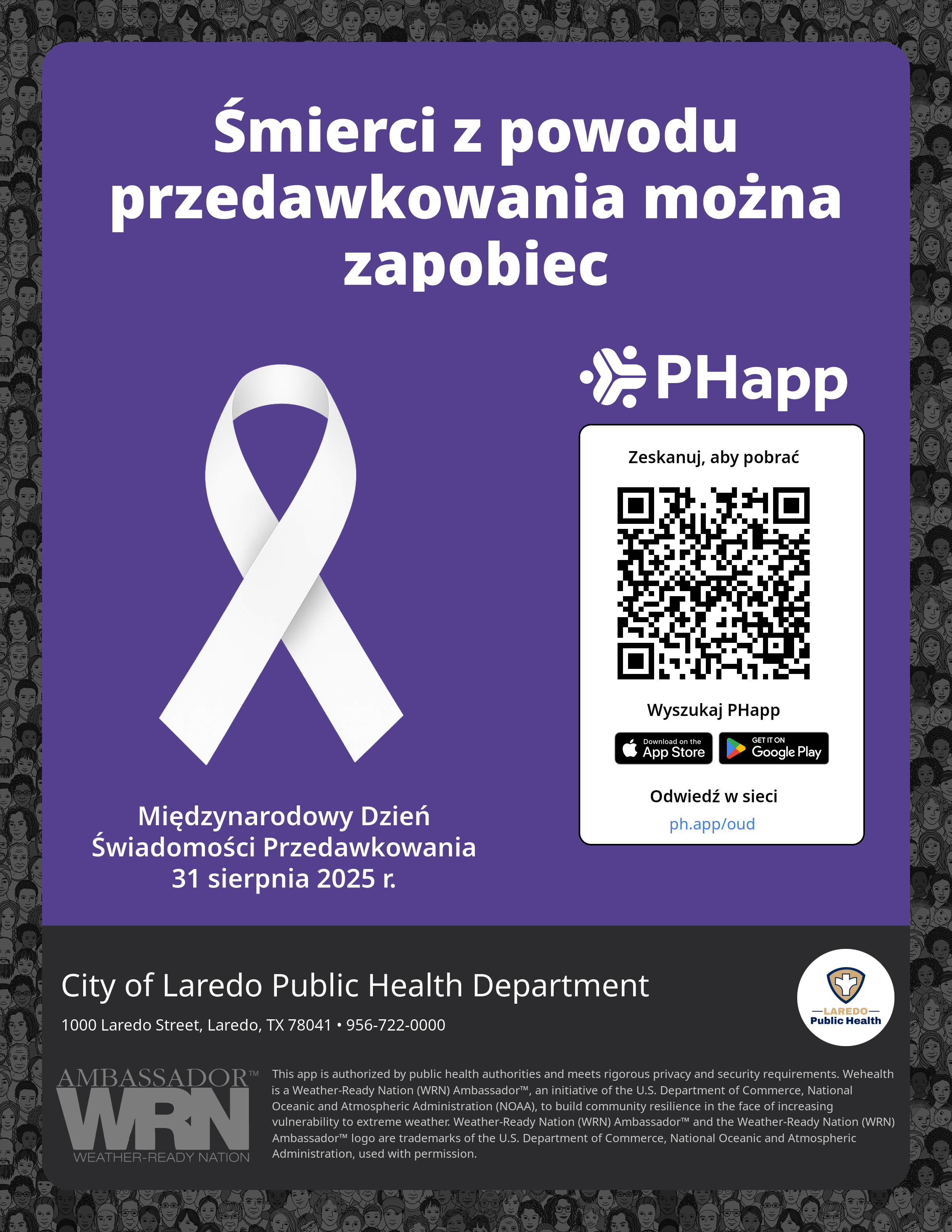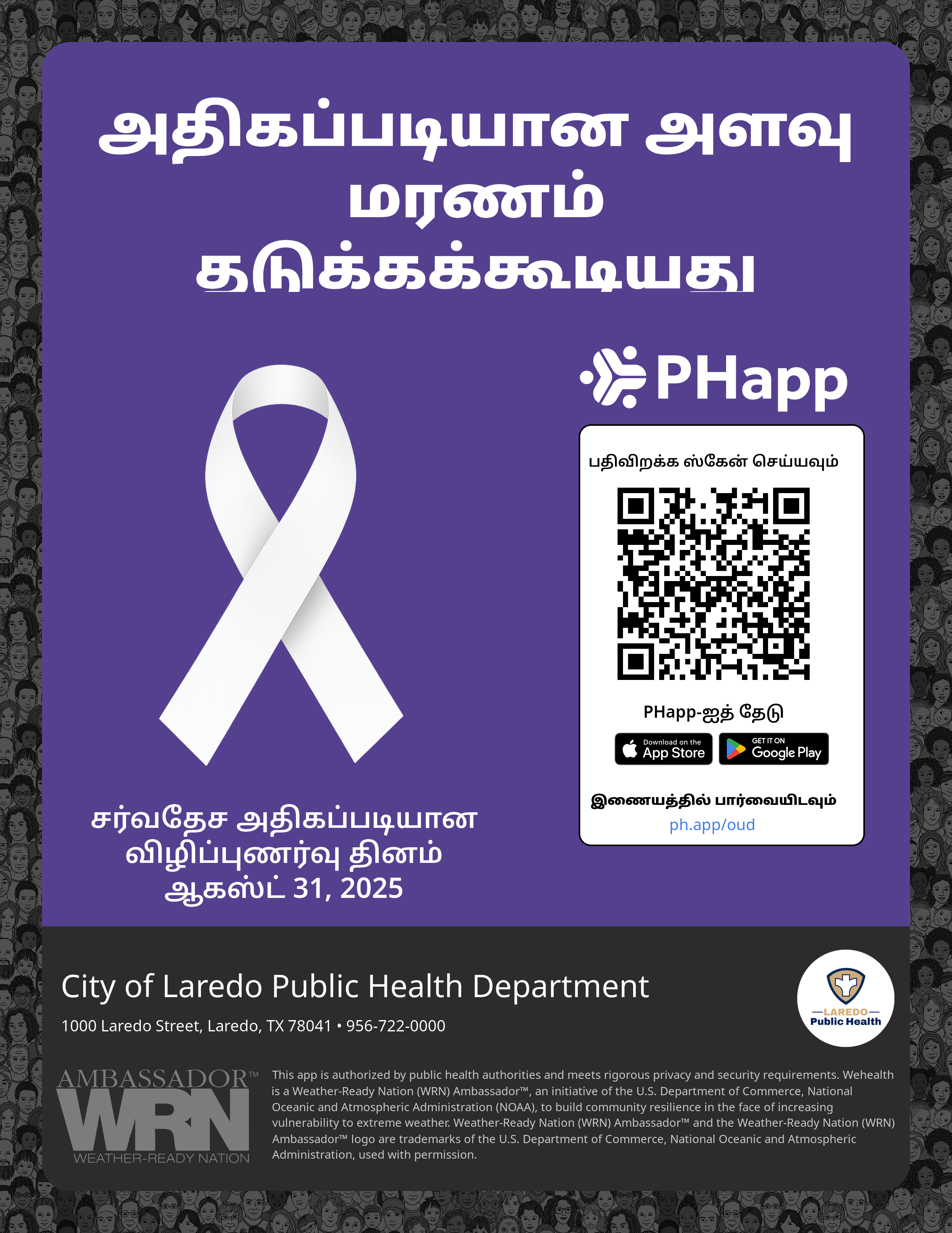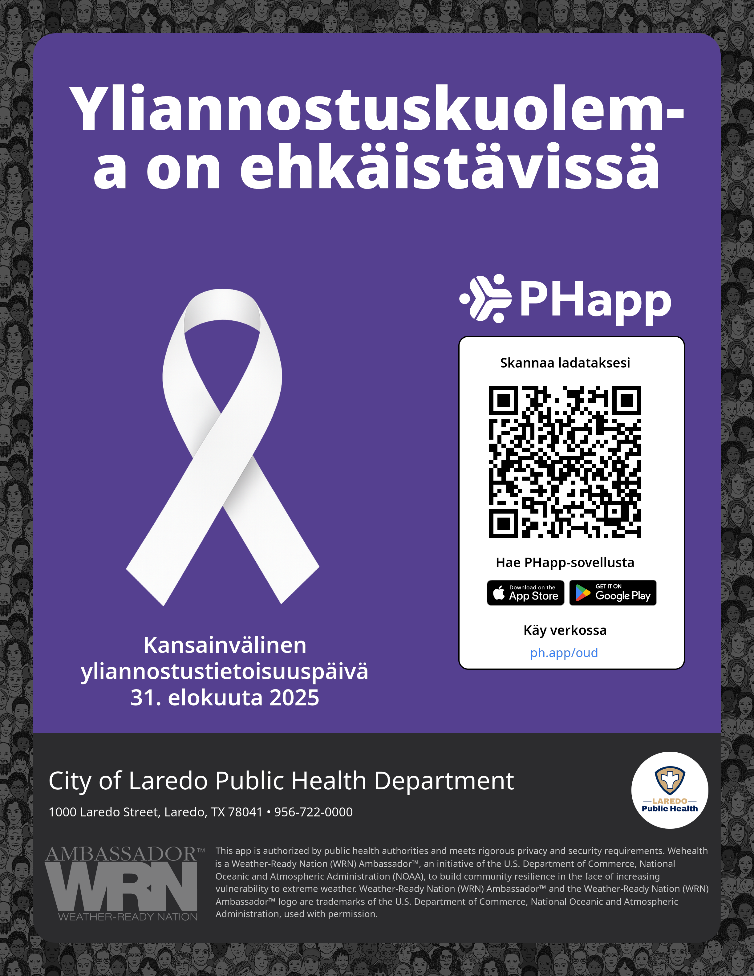 Print this flyer/poster on 8.5×11 paper. The QR code and links are personalized for City of Laredo Public Health Department.