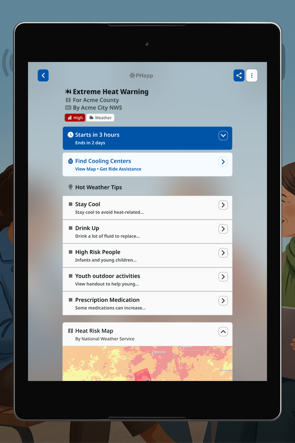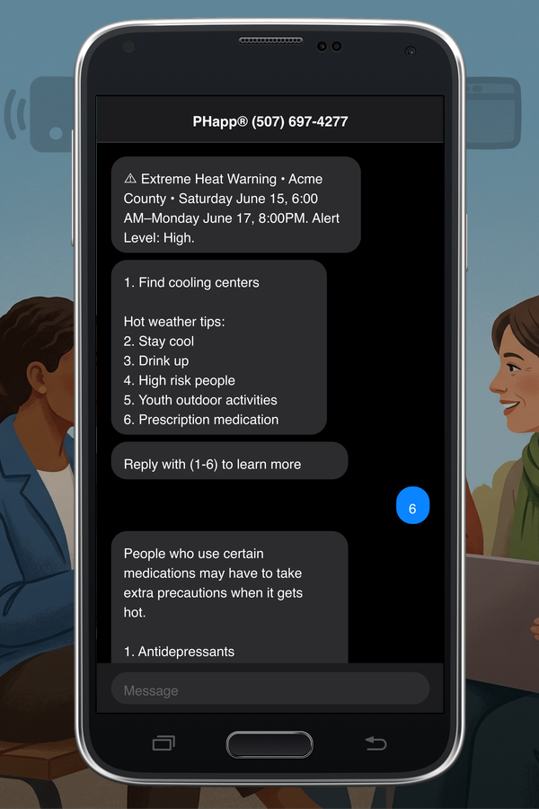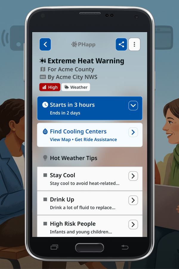 PHapp delivers the same verified information on all channels from a single source of truth, delivering it in 50+ languages simultaneously. See examples of how the information appears on each channel.